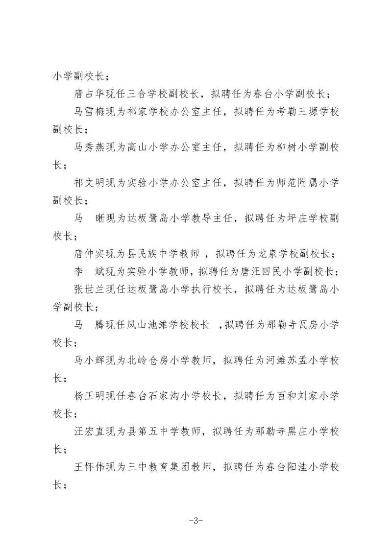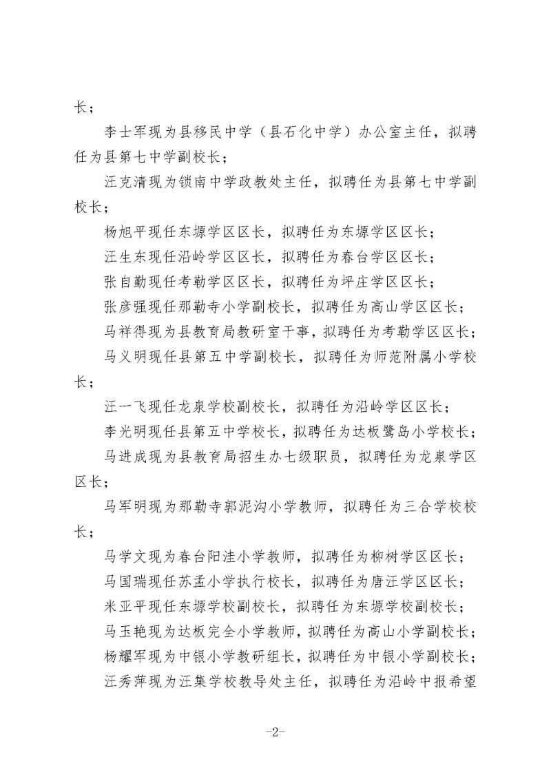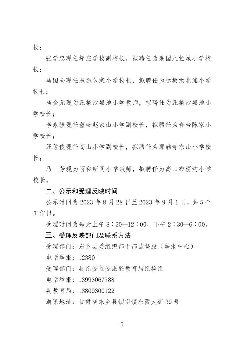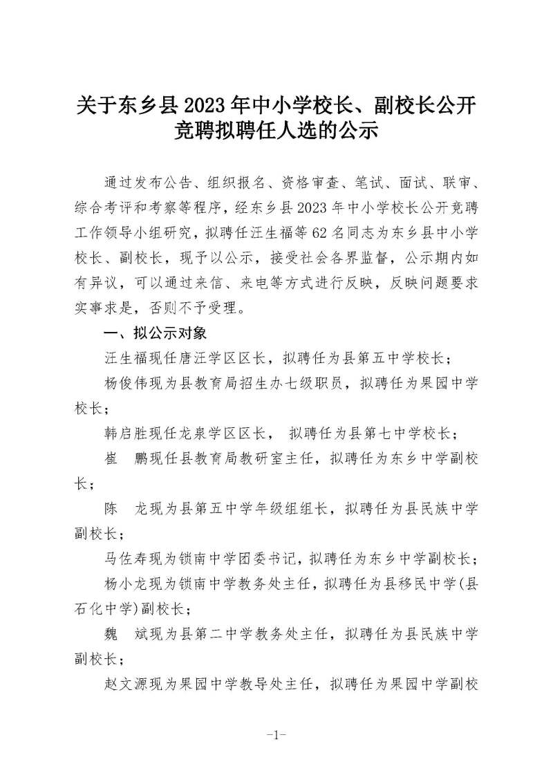关于东乡县2023年中小学校长、副校长公开竞聘拟聘任人选的公示