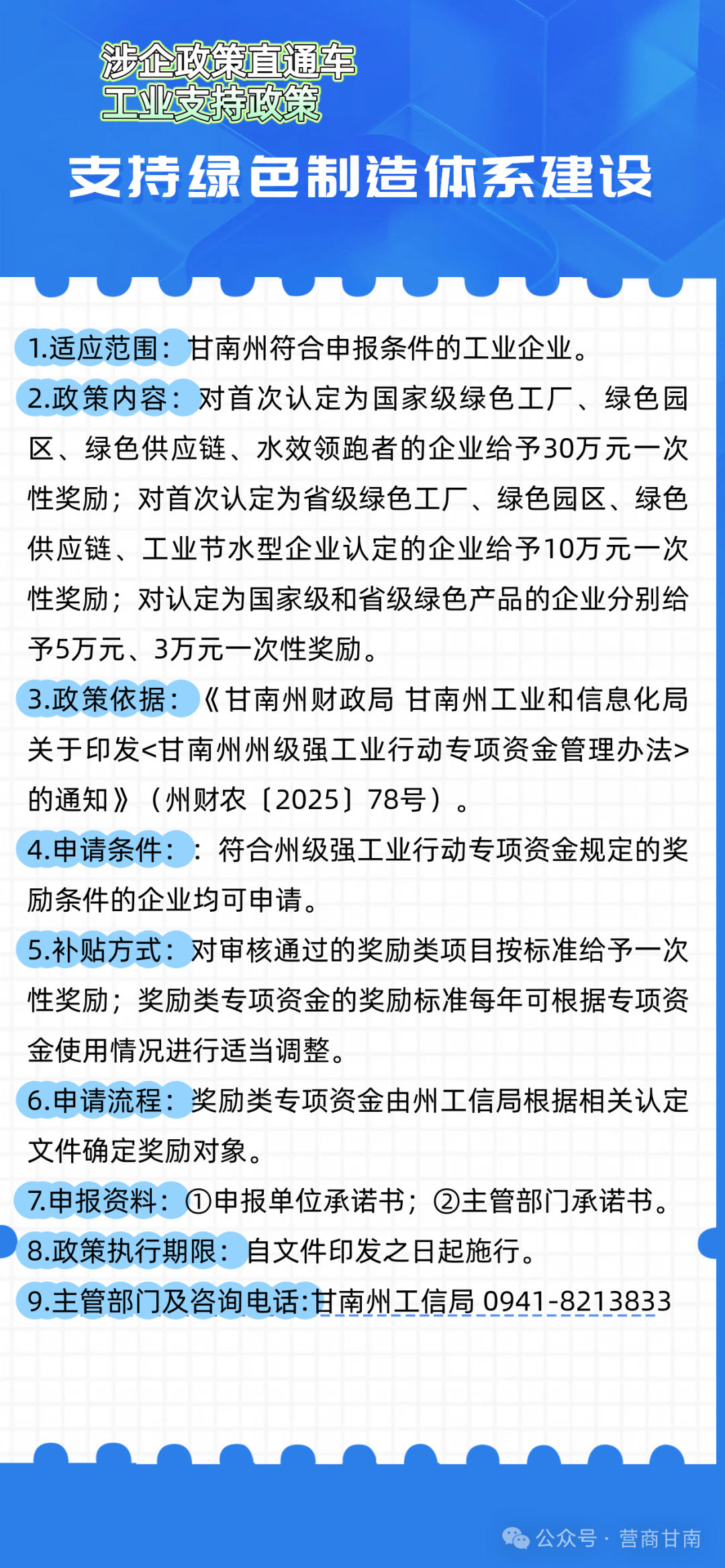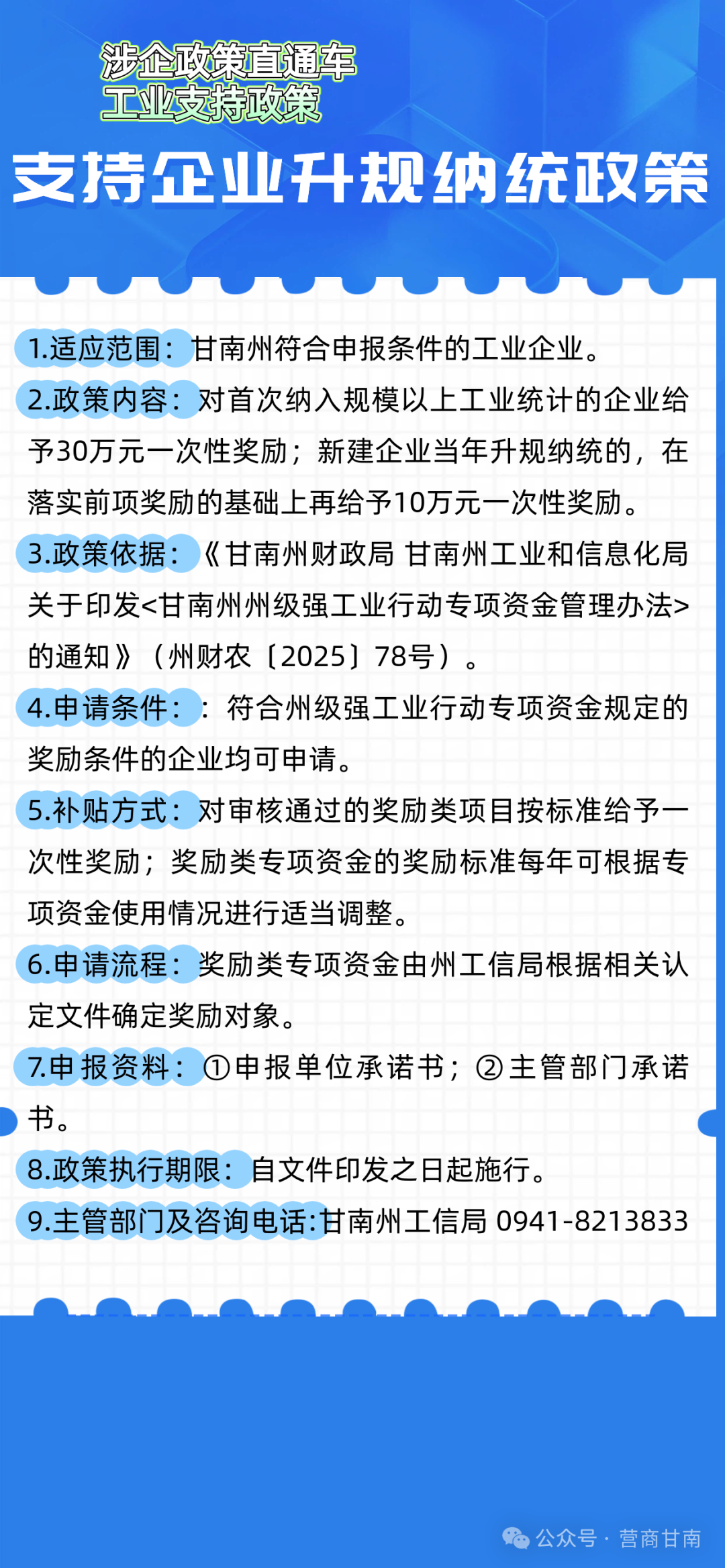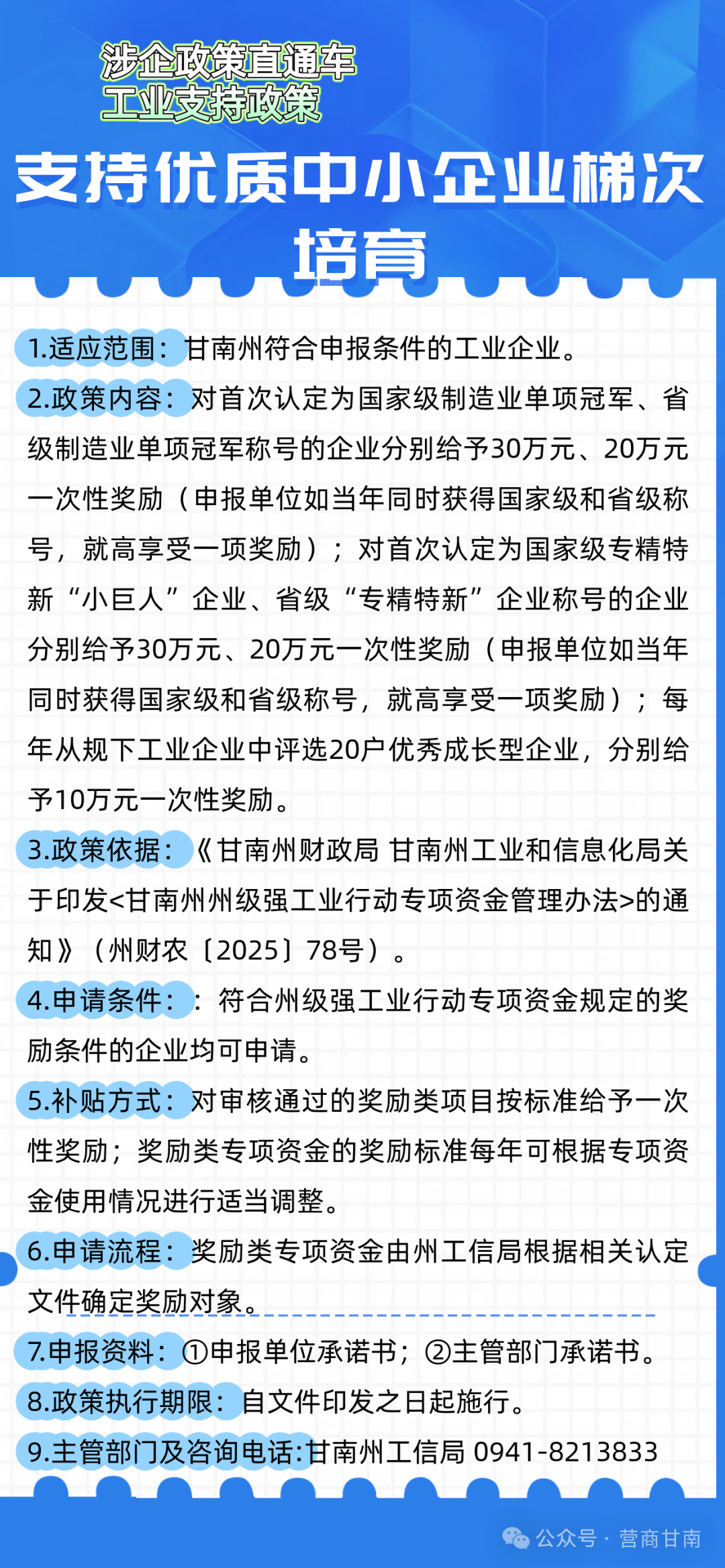 为深入贯彻落实党中央、国务院关于优化营商环境的决策部署,扎实推进“优化营商环境全面提升年”行动,切实为企业提供更加精准、便捷的政策服务,推动政企沟通“零距离”、政策落实“无障碍”,让企业办事更省心、经营更安心、发展更顺心,进一步激发市场活力,助推甘南经济高质量发展。特开设【涉企政策直通车】专栏,定期推送相关涉企政策。