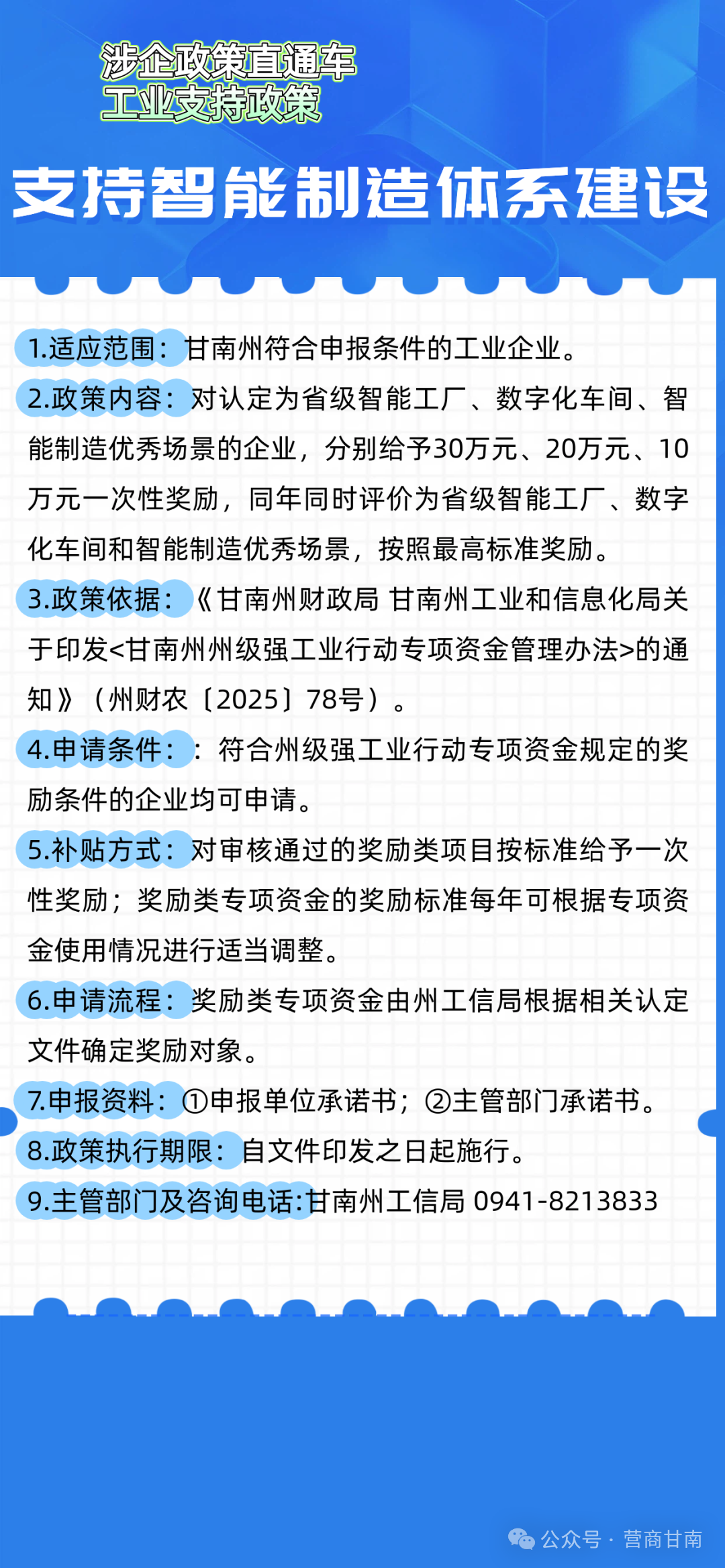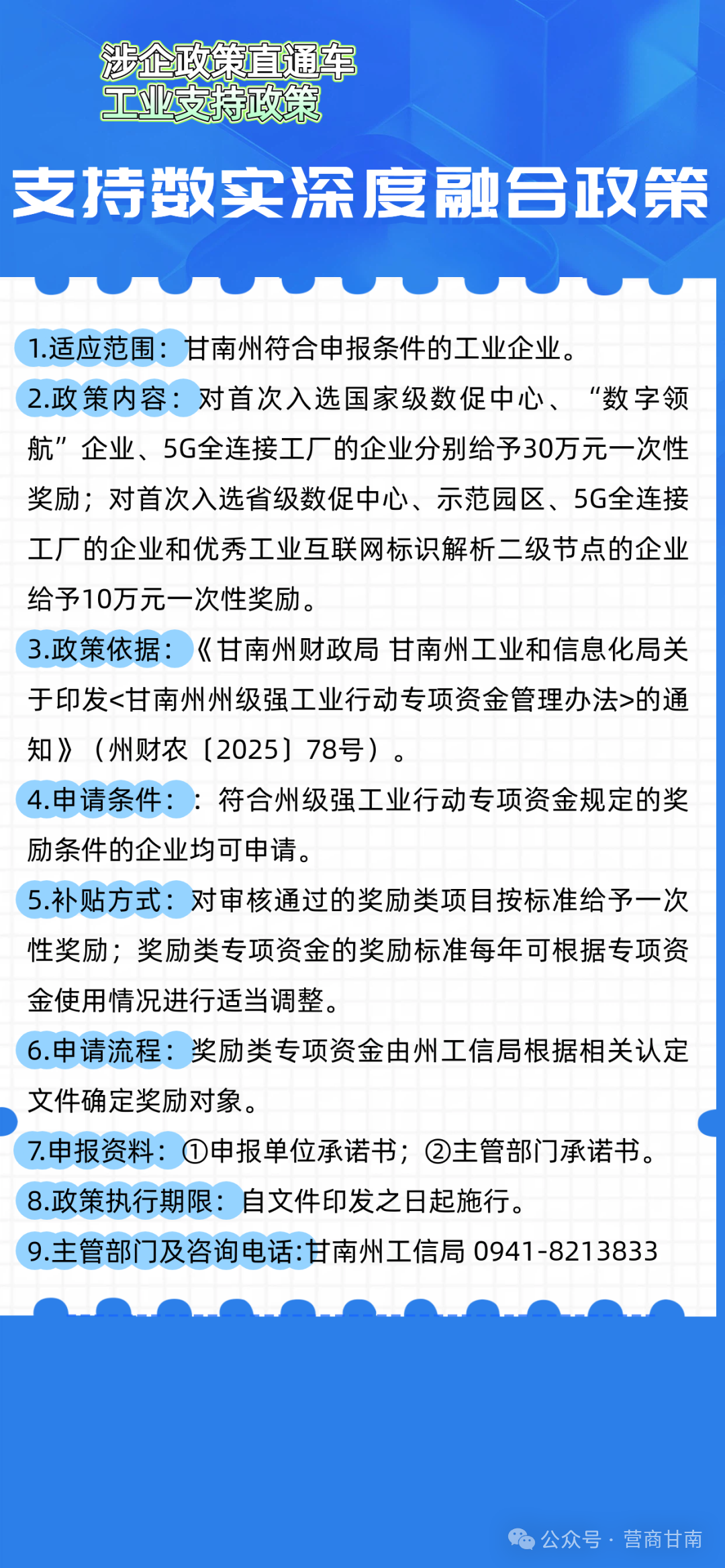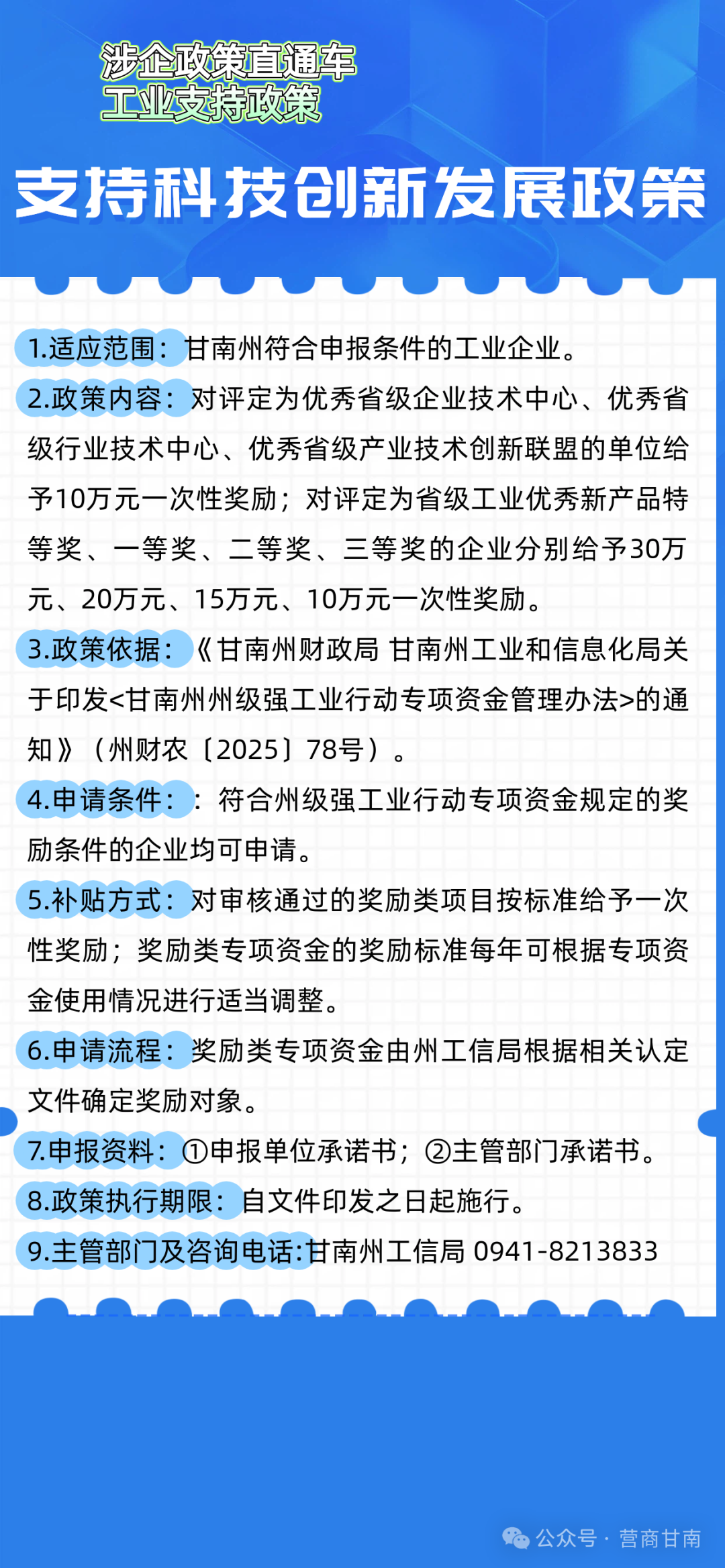 为深入贯彻落实党中央、国务院关于优化营商环境的决策部署,扎实推进“优化营商环境全面提升年”行动,切实为企业提供更加精准、便捷的政策服务,推动政企沟通“零距离”、政策落实“无障碍”,让企业办事更省心、经营更安心、发展更顺心,进一步激发市场活力,助推甘南经济高质量发展。特开设【涉企政策直通车】专栏,定期推送相关涉企政策。