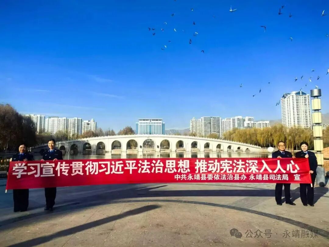 为扩大宣传覆盖面和影响力,活动采取“线上+线下”融合模式。线上,依托“法治永靖”微信公众号、视频号、抖音号等新媒体平台,推送宪法知识解读、典型案例分析、活动动态等内容;线下,同步开展宪法进机关、宪法进学校、宪法进企业等活动,在县城街道悬挂宣传横幅、摆放宣传展板,通过电子显示屏滚动播放宪法宣传标语和宣传片,营造“抬头见法、低头学法”的浓厚氛围。