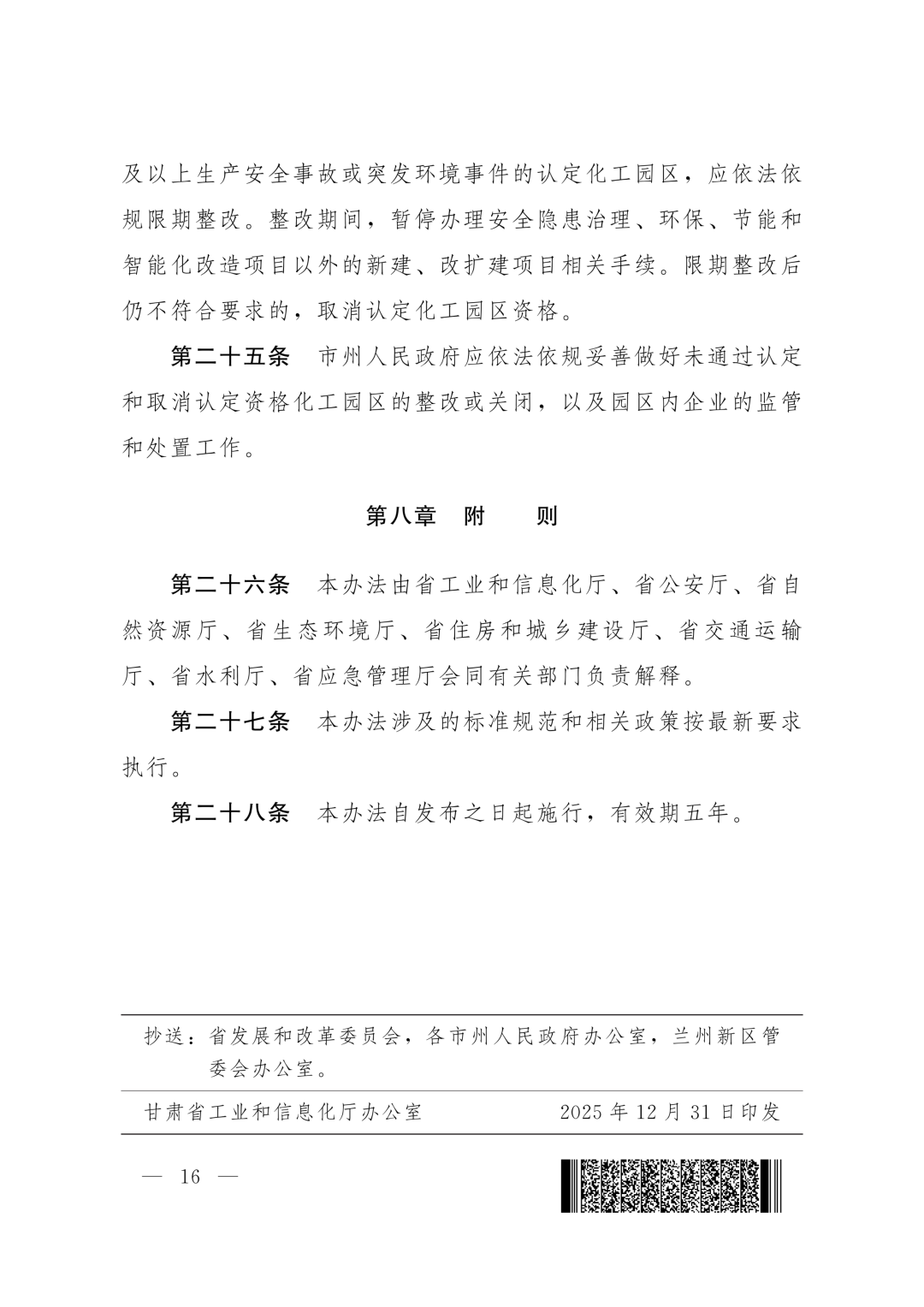 关于修订印发《甘肃省化工园区建设标准和认定管理办法》的通知