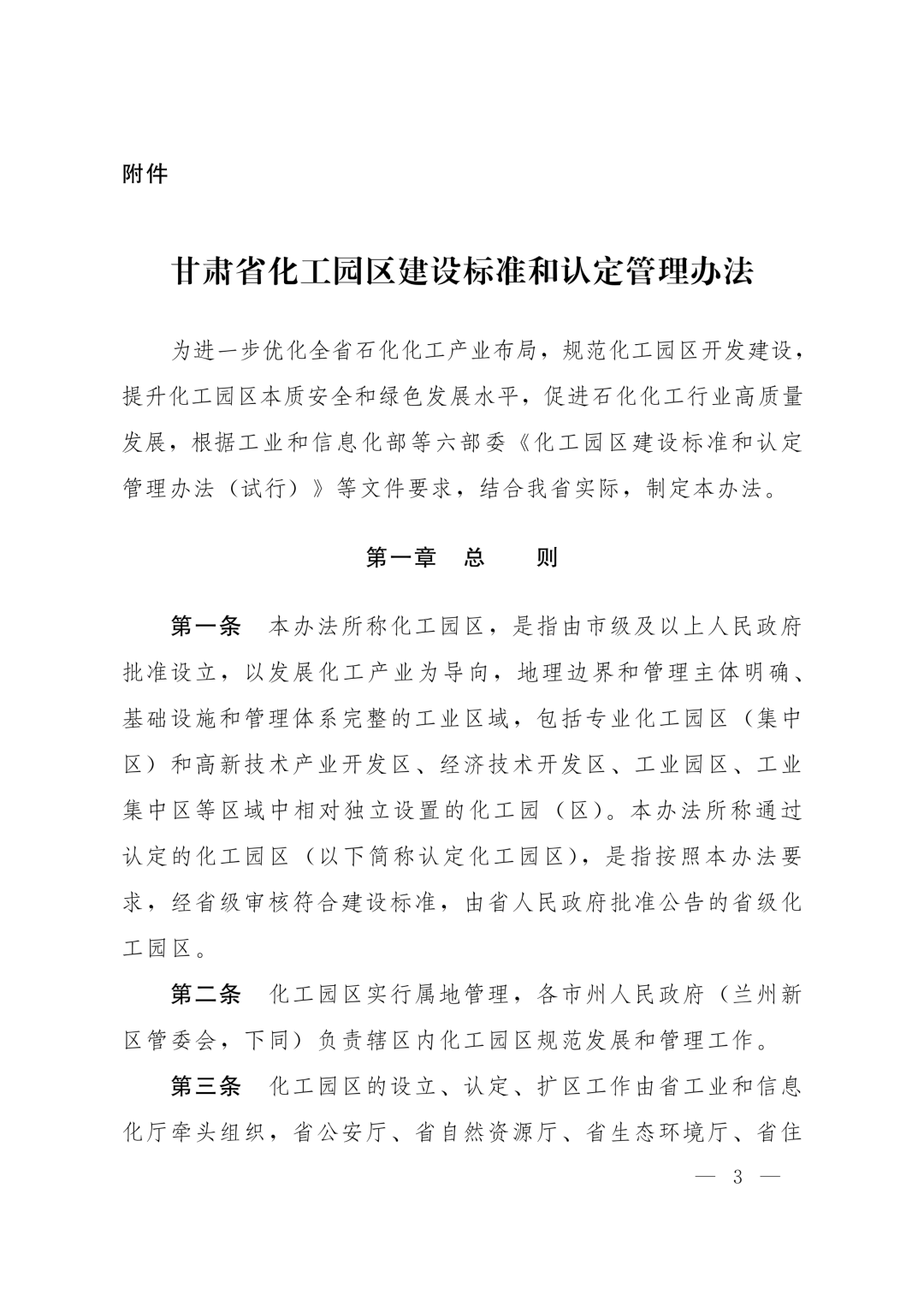 附件:甘肃省化工园区建设标准和认定管理办法