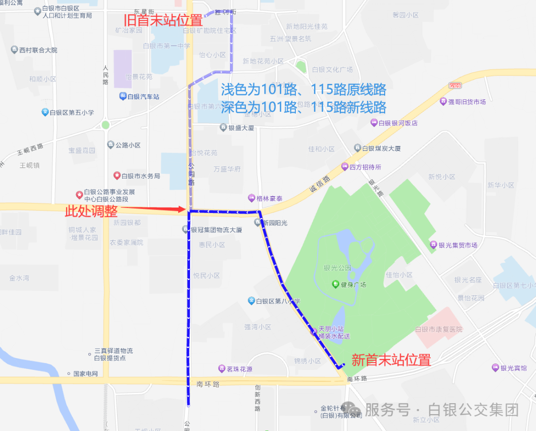因白银城区城建什字防洪排涝能力提升项目施工,原位于公园路胜利街城乡公交调度中心将无法继续使用。根据城市规划和交通布局需要,白银城乡公交调度中心将迁移至白银区强湾路锦绣苑小区东北门对面。经前期充分调研,根据城乡现有公交线路途径走向、客流需求等条件,白银公交集团对迁移后的线路进行优化调整。现将相关事宜公告如下:城乡公交调度中心——白银区八校——熟食品加工基地——银光十字——原线路