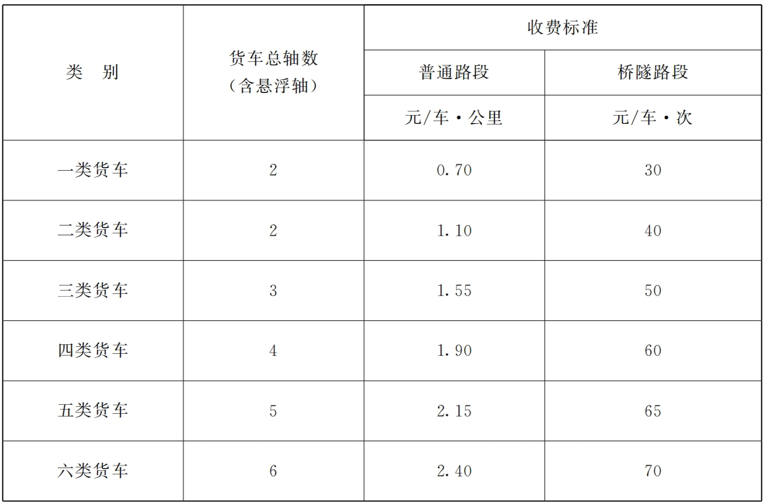 通渭至定西高速公路纳入全省高速公路联网收费。具体收费标准如下: