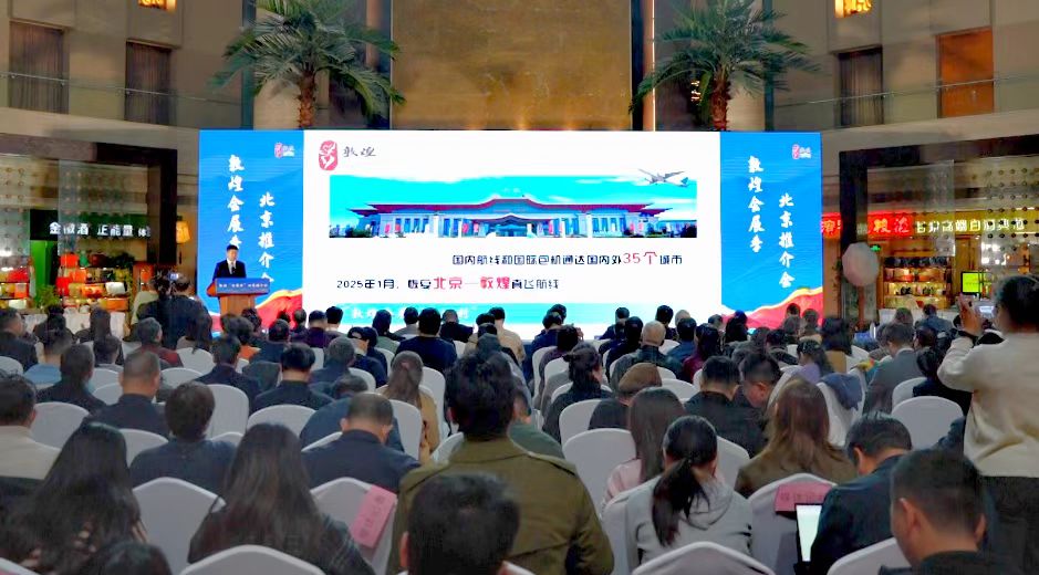 11月20日下午,2024年敦煌“会展季”北京推介会在北京飞天大厦兰州厅举行,酒泉市委常委、敦煌市委书记王彦群在会上致辞,并推介敦煌会展资源和旅游优惠政策。