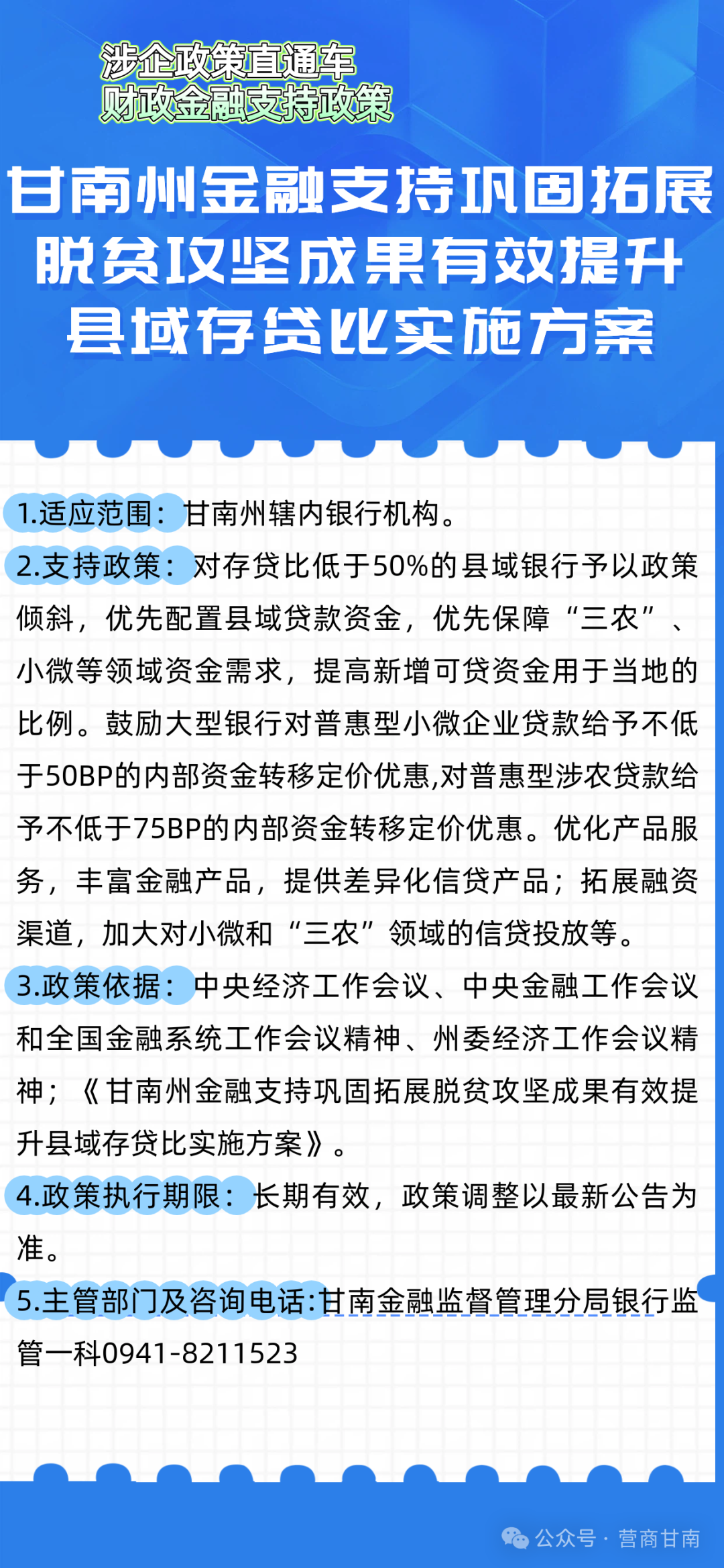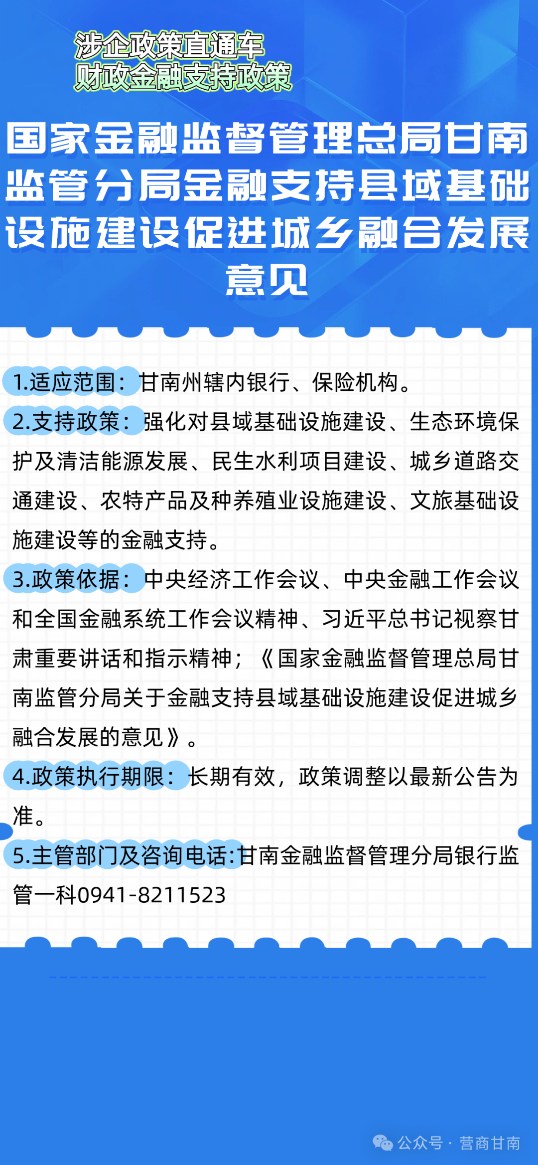 为深入贯彻落实党中央、国务院关于优化营商环境的决策部署,扎实推进“优化营商环境全面提升年”行动,切实为企业提供更加精准、便捷的政策服务,推动政企沟通“零距离”、政策落实“无障碍”,让企业办事更省心、经营更安心、发展更顺心,进一步激发市场活力,助推甘南经济高质量发展。特开设【涉企政策直通车】专栏,定期推送相关涉企政策。