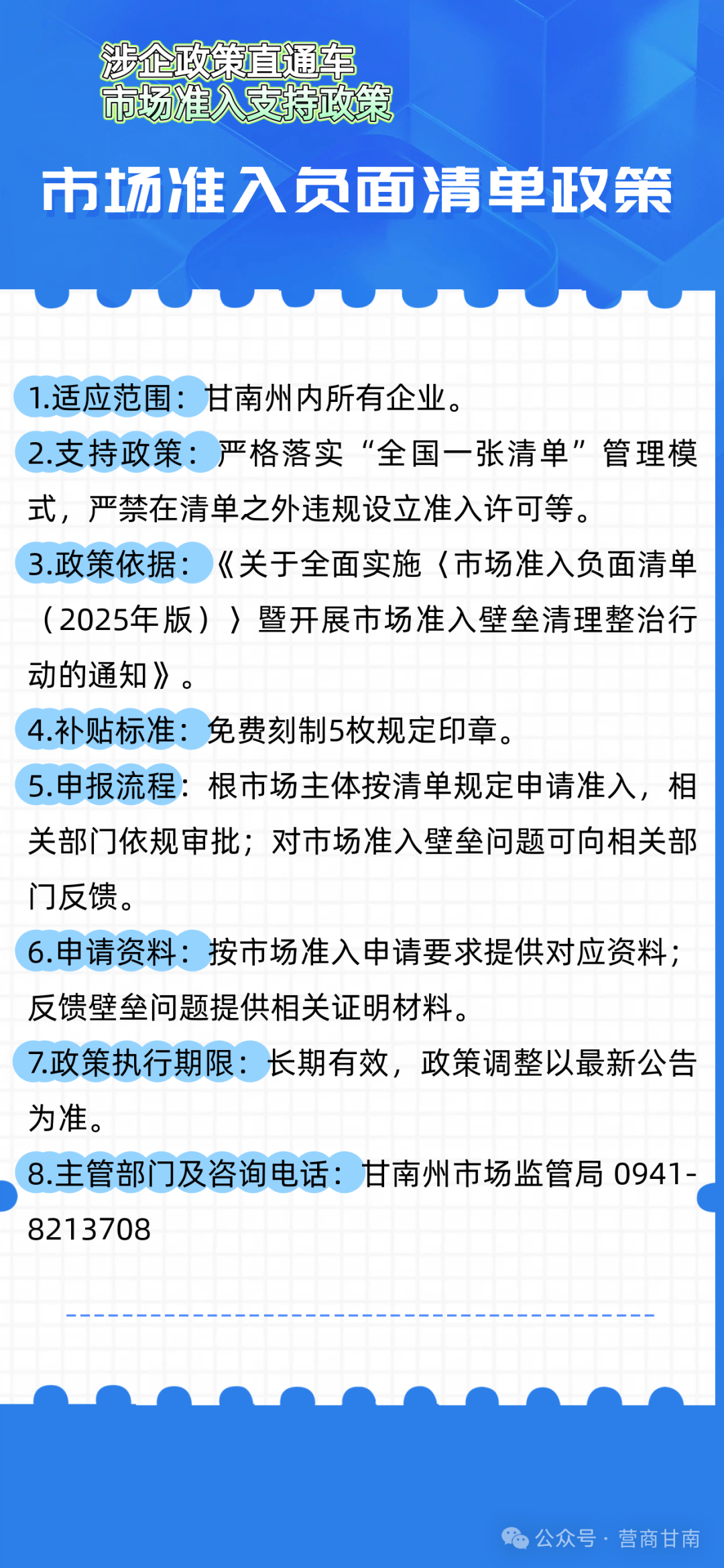 为深入贯彻落实党中央、国务院关于优化营商环境的决策部署,扎实推进“优化营商环境全面提升年”行动,切实为企业提供更加精准、便捷的政策服务,推动政企沟通“零距离”、政策落实“无障碍”,让企业办事更省心、经营更安心、发展更顺心,进一步激发市场活力,助推甘南经济高质量发展。特开设【涉企政策直通车】专栏,定期推送相关涉企政策。