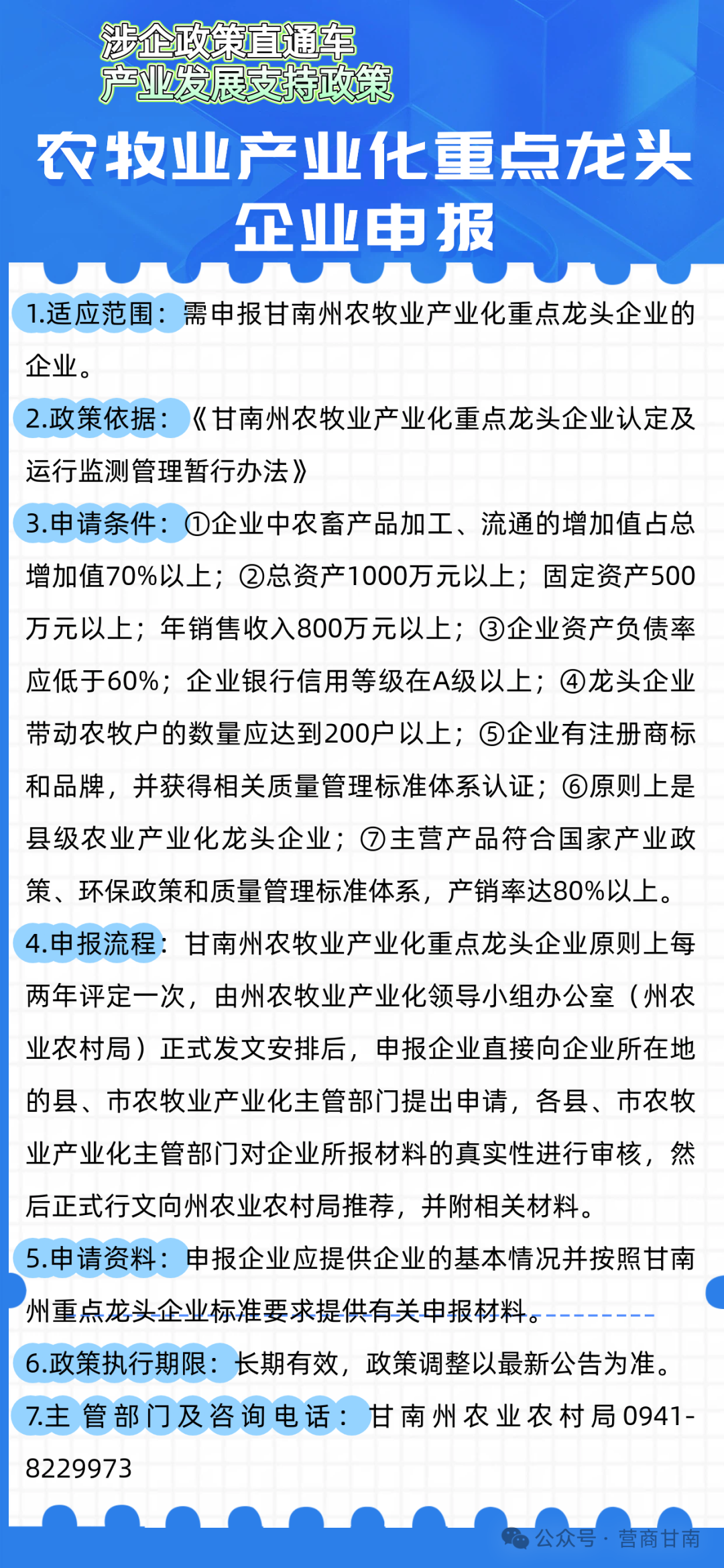 为深入贯彻落实党中央、国务院关于优化营商环境的决策部署,扎实推进“优化营商环境全面提升年”行动,切实为企业提供更加精准、便捷的政策服务,推动政企沟通“零距离”、政策落实“无障碍”,让企业办事更省心、经营更安心、发展更顺心,进一步激发市场活力,助推甘南经济高质量发展。特开设【涉企政策直通车】专栏,定期推送相关涉企政策。