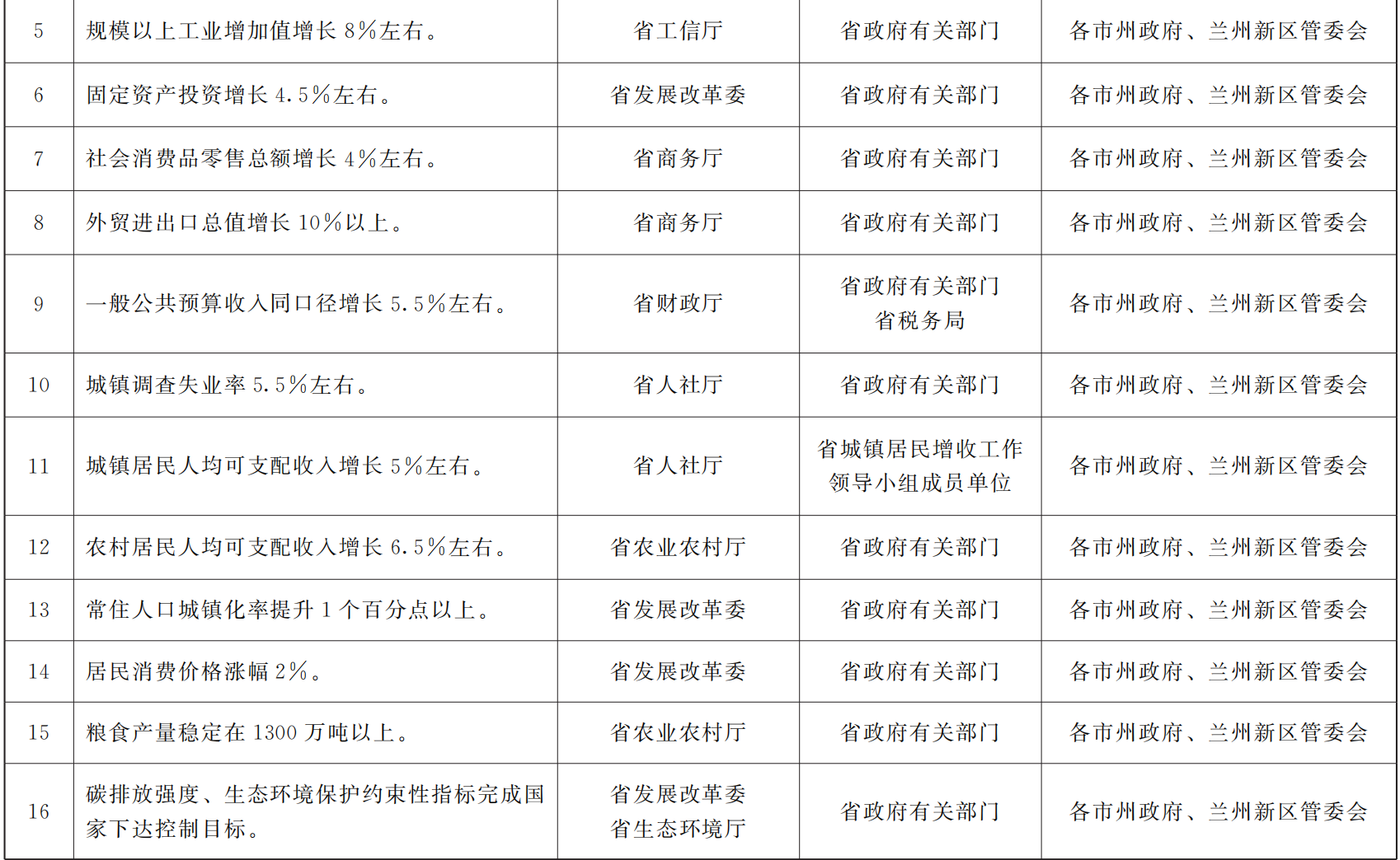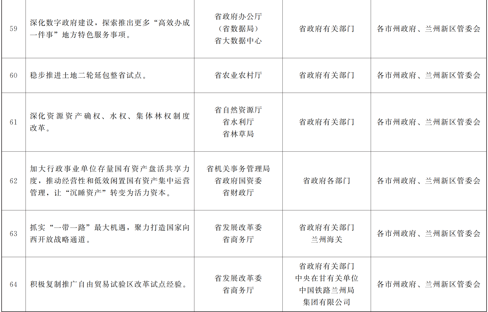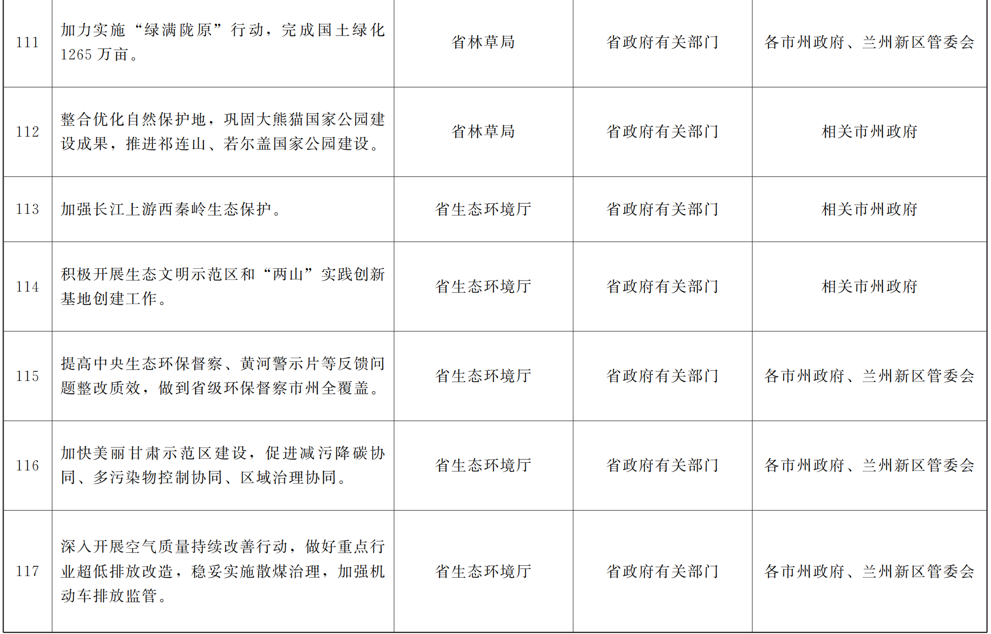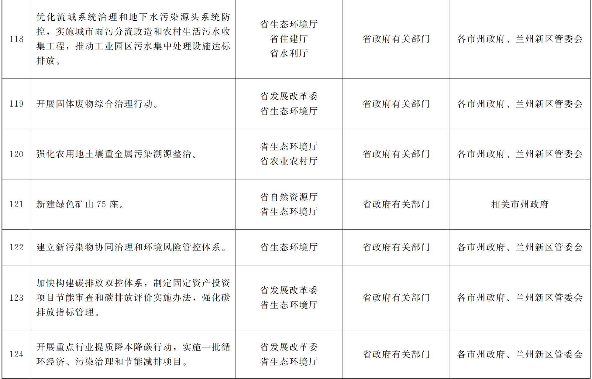 各市、自治州人民政府,甘肃矿区办事处,兰州新区管委会,省政府各部门,中央在甘各单位:
