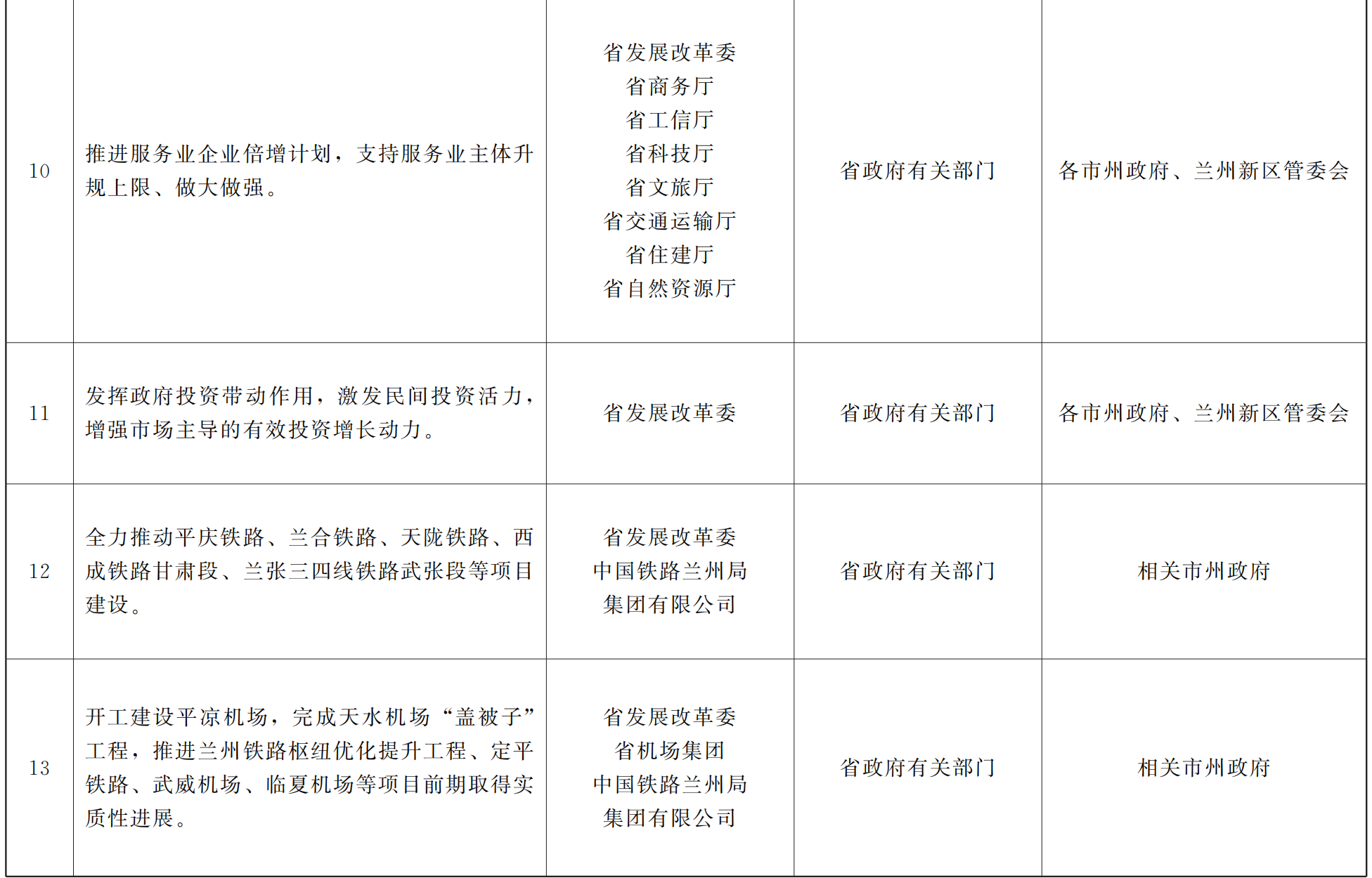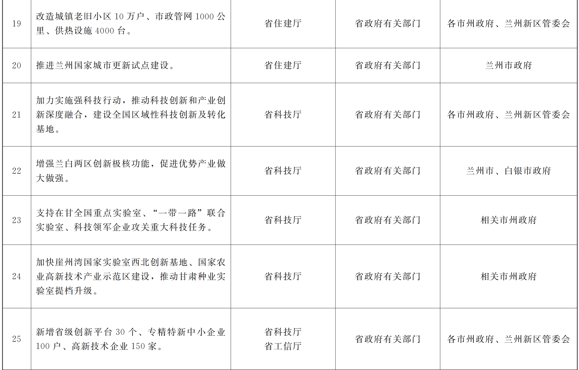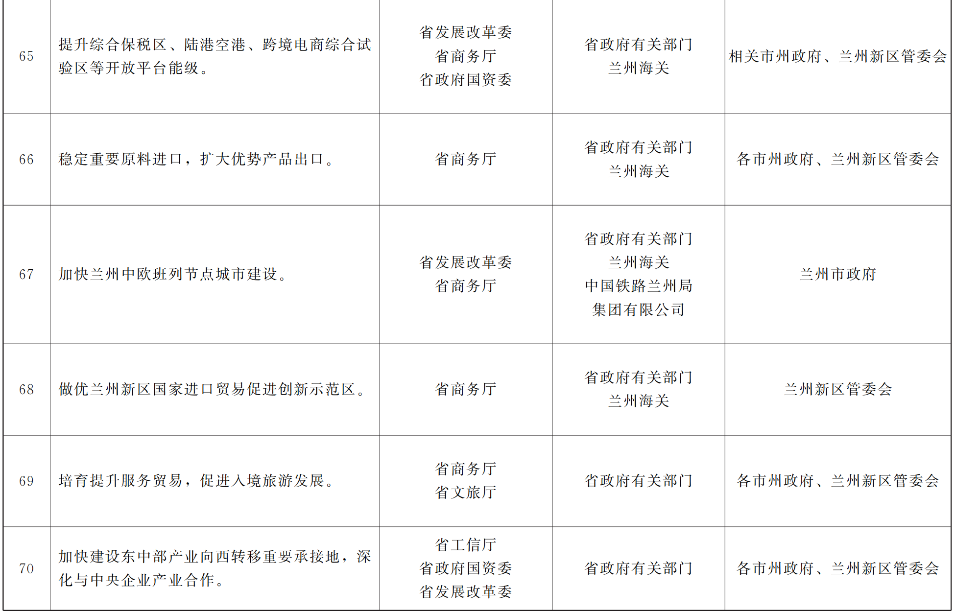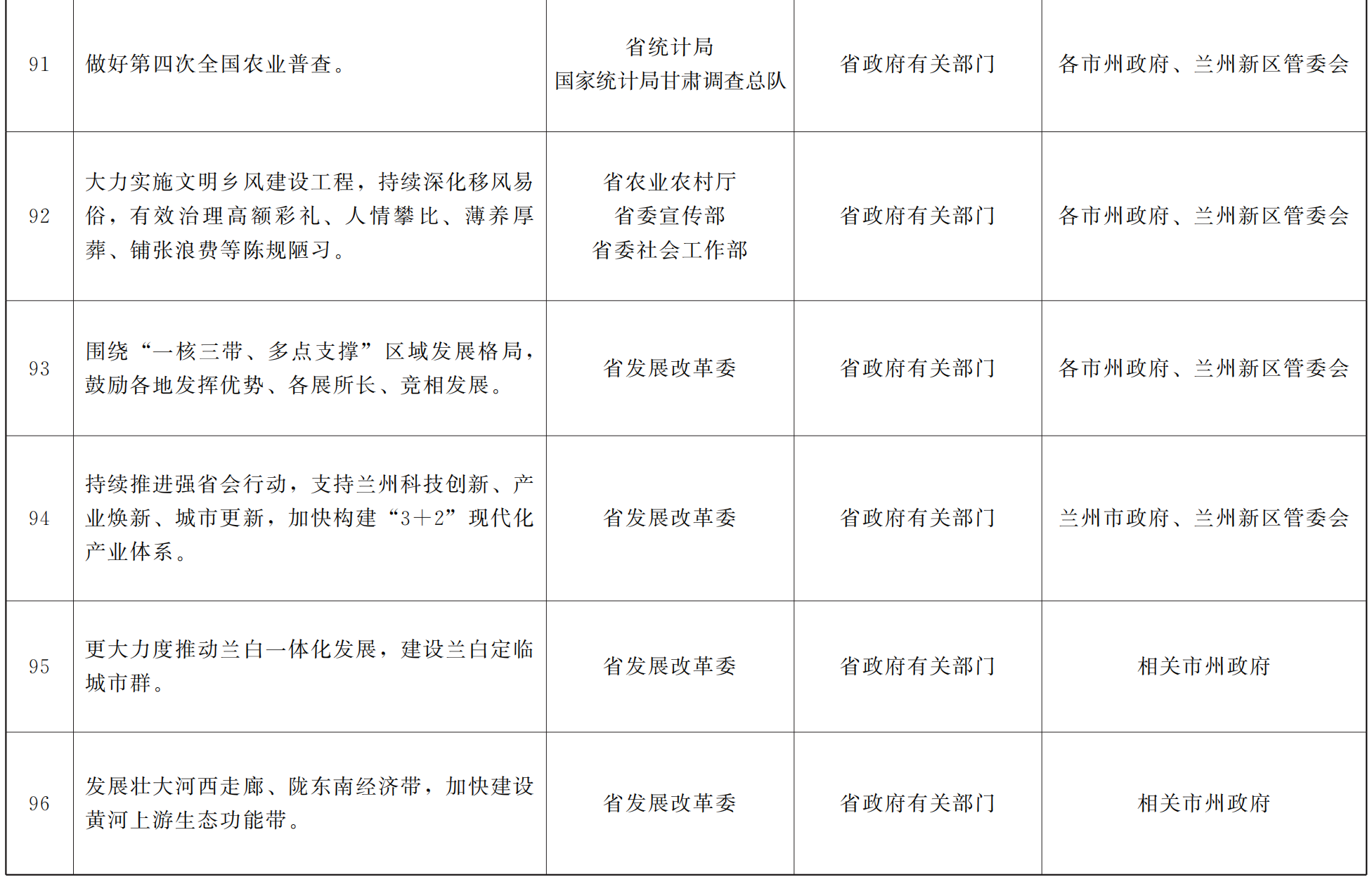 各市、自治州人民政府,甘肃矿区办事处,兰州新区管委会,省政府各部门,中央在甘各单位: