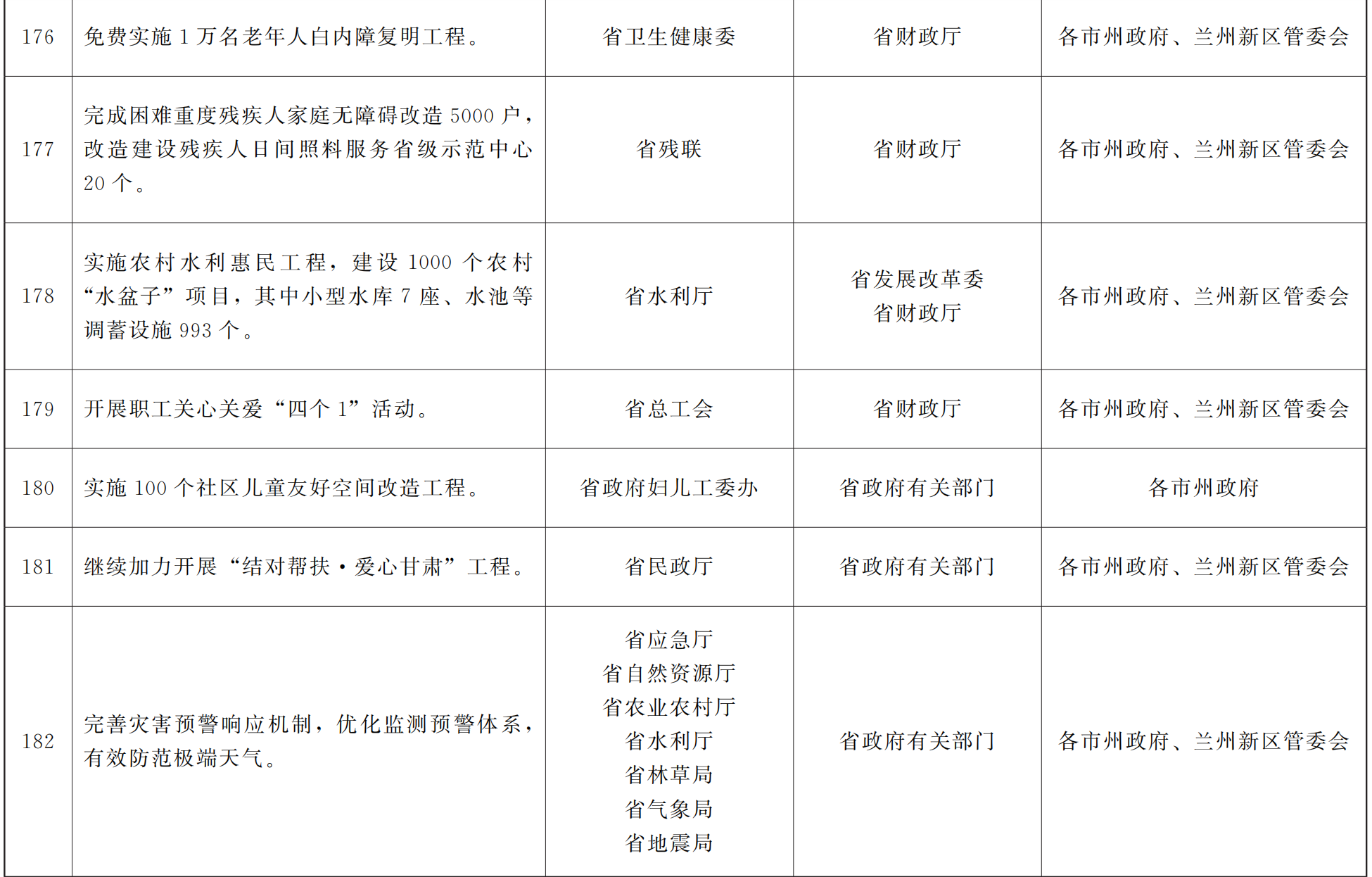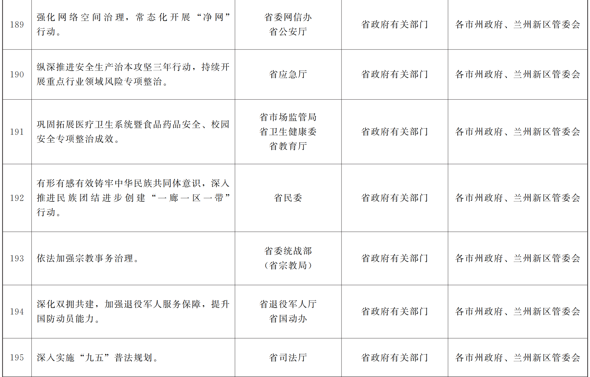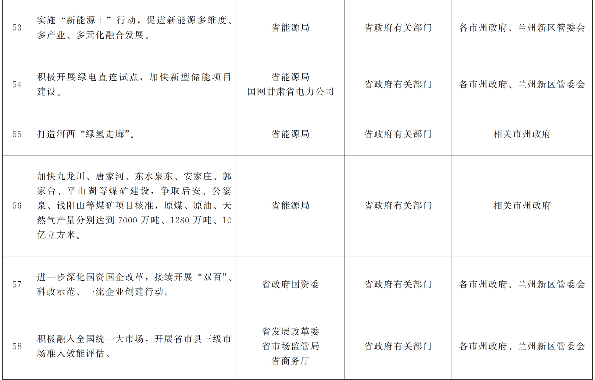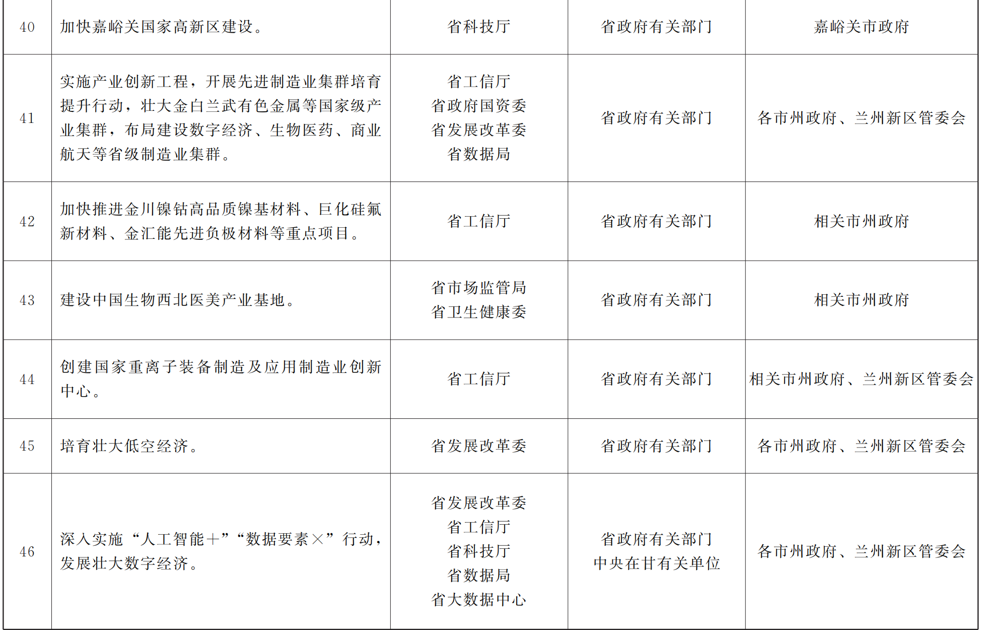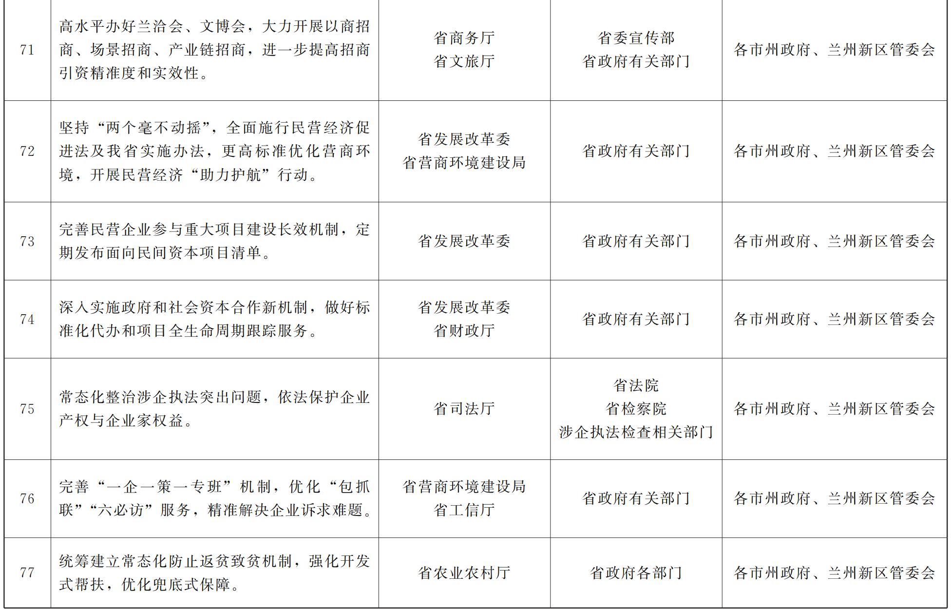 各市、自治州人民政府,甘肃矿区办事处,兰州新区管委会,省政府各部门,中央在甘各单位: