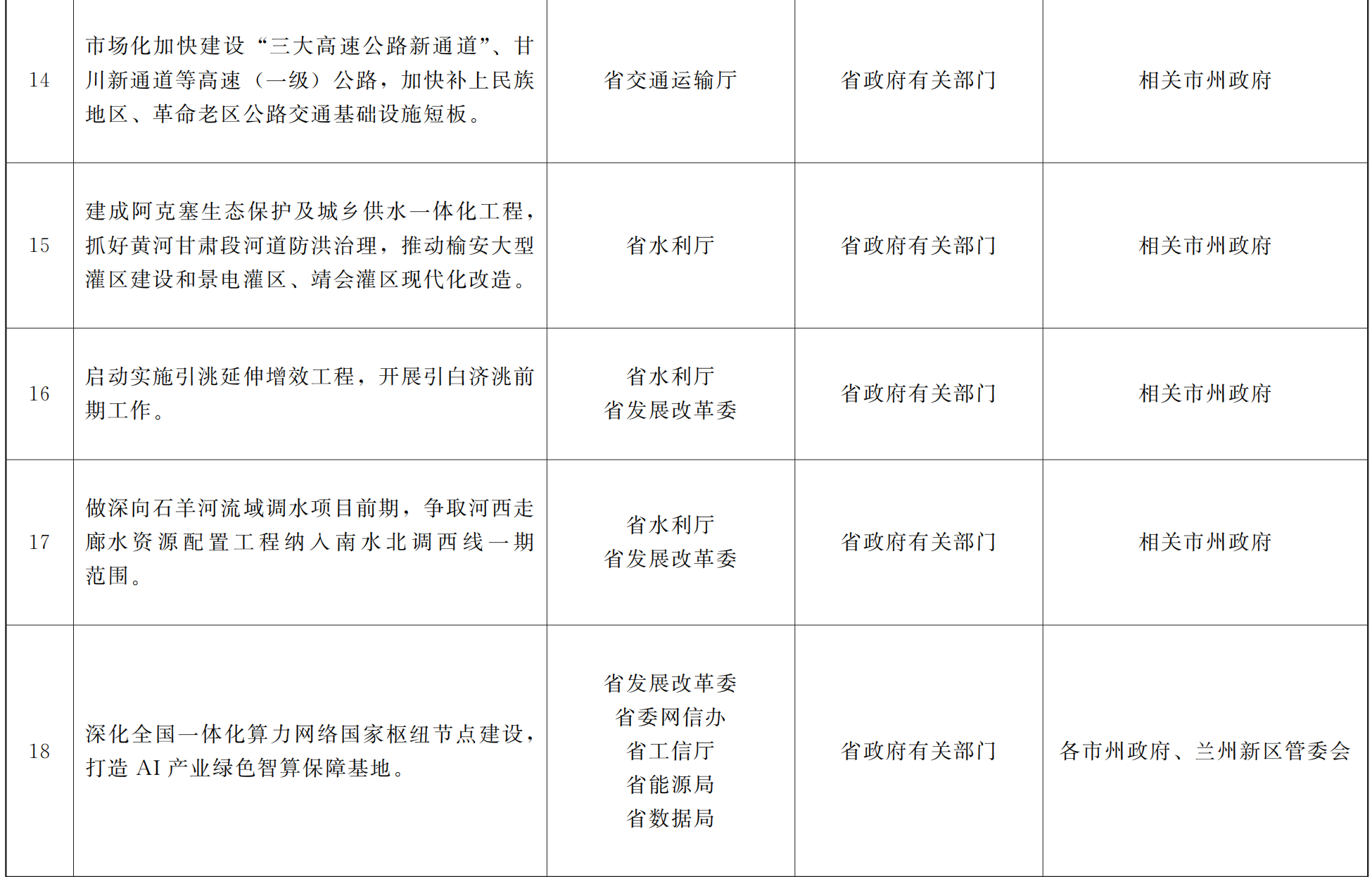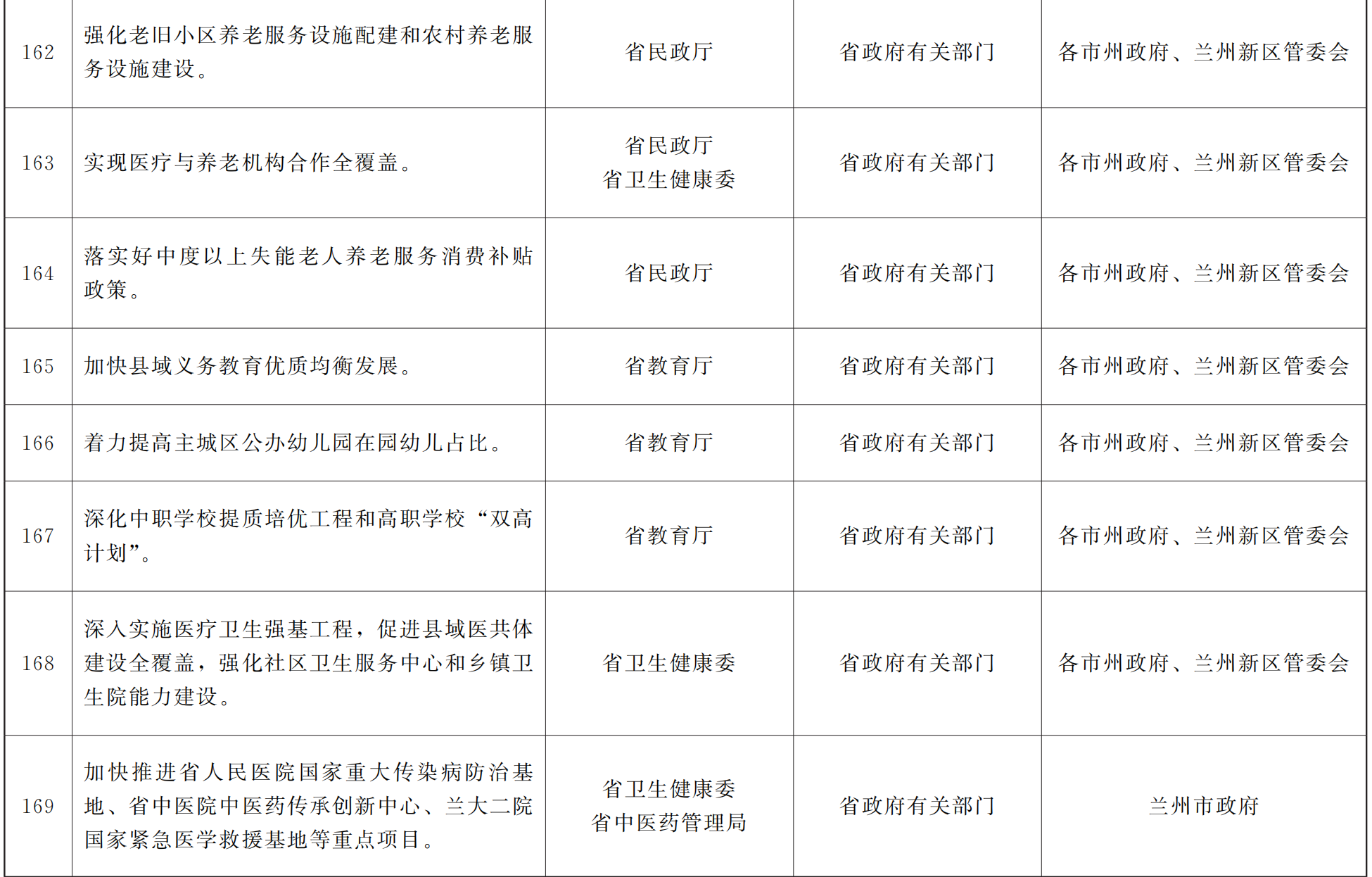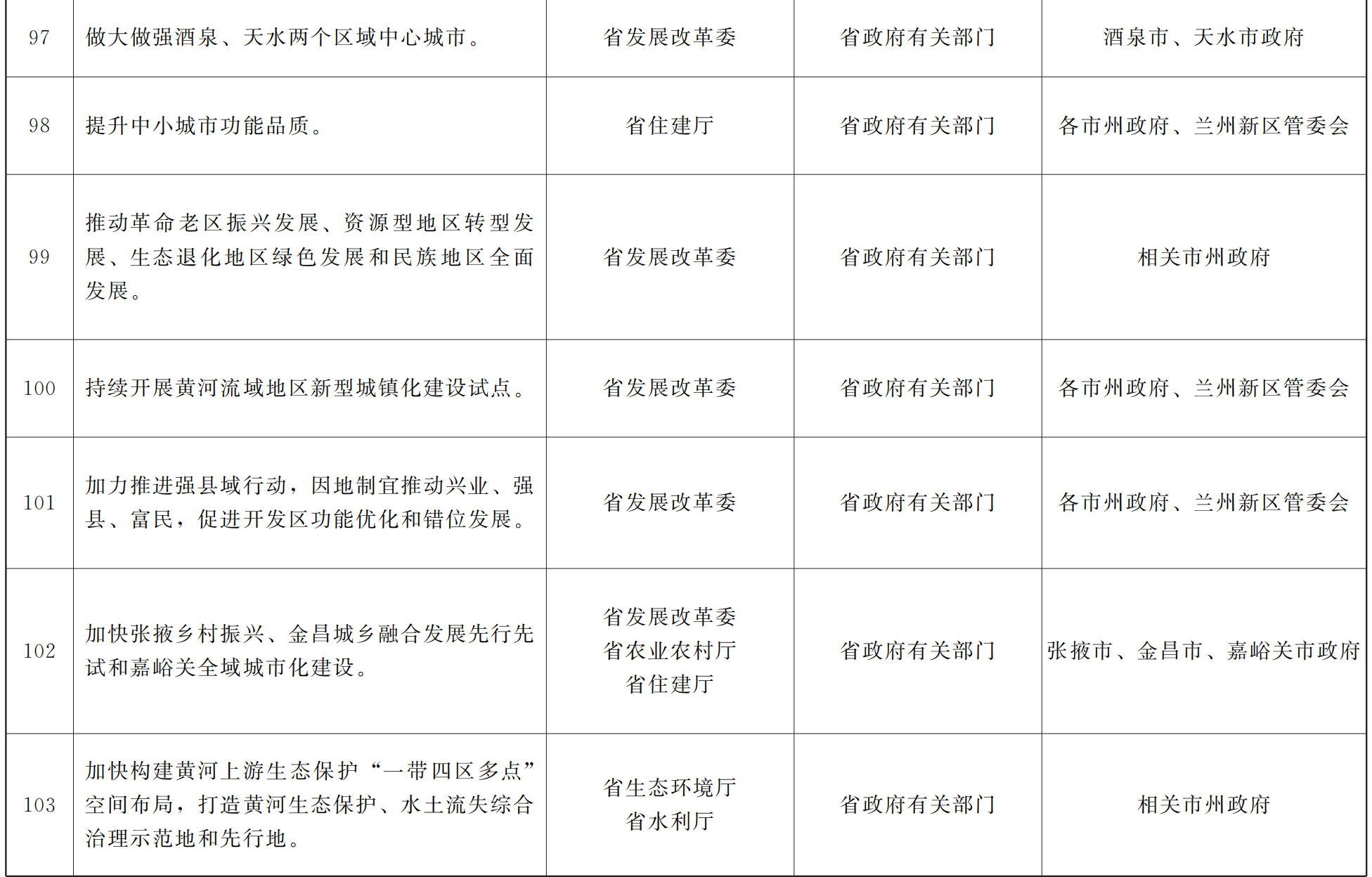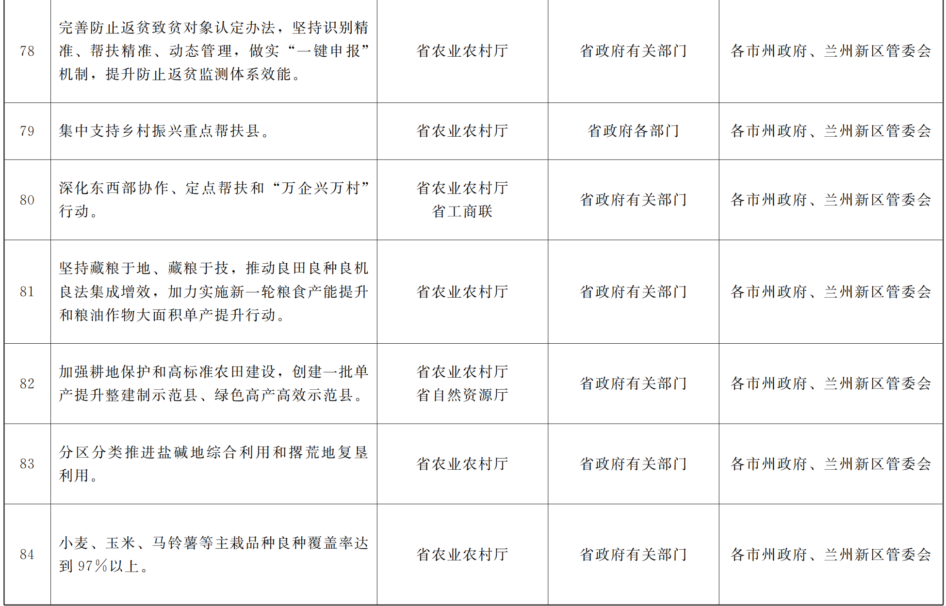 各市、自治州人民政府,甘肃矿区办事处,兰州新区管委会,省政府各部门,中央在甘各单位: