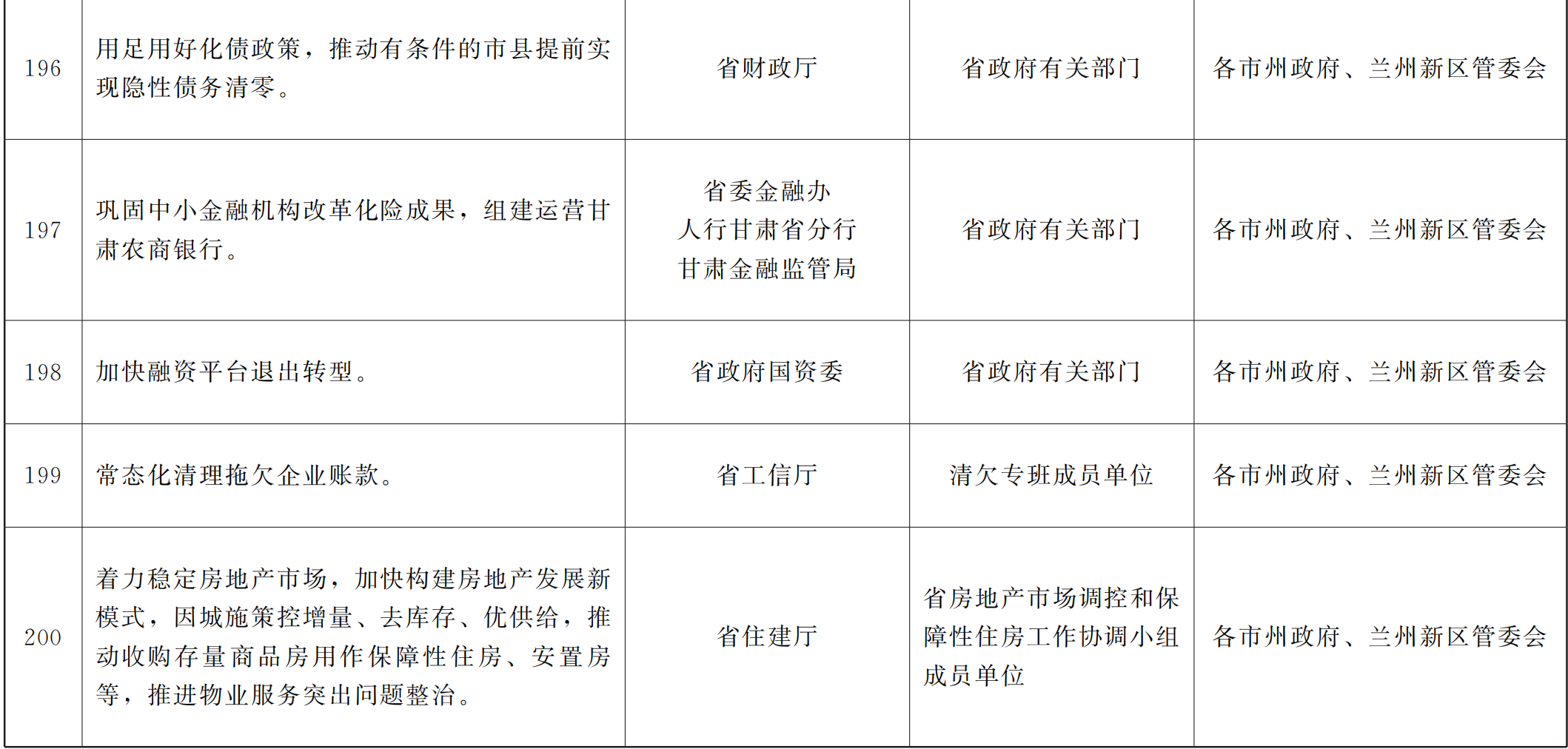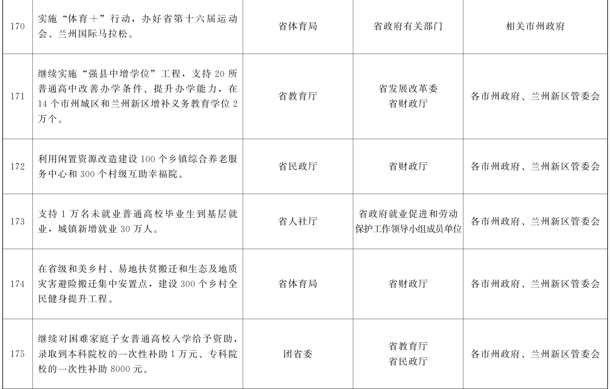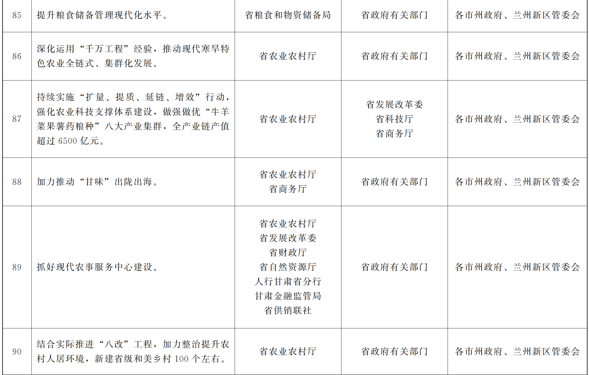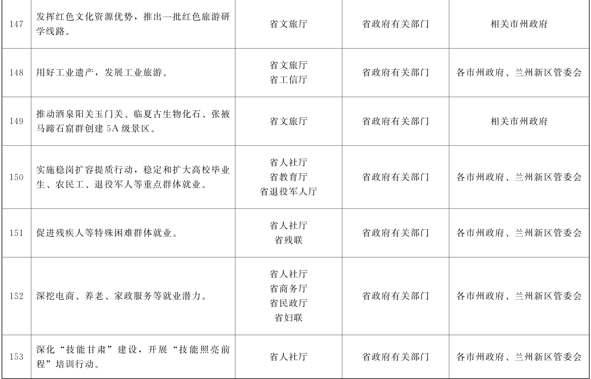 各市、自治州人民政府,甘肃矿区办事处,兰州新区管委会,省政府各部门,中央在甘各单位: