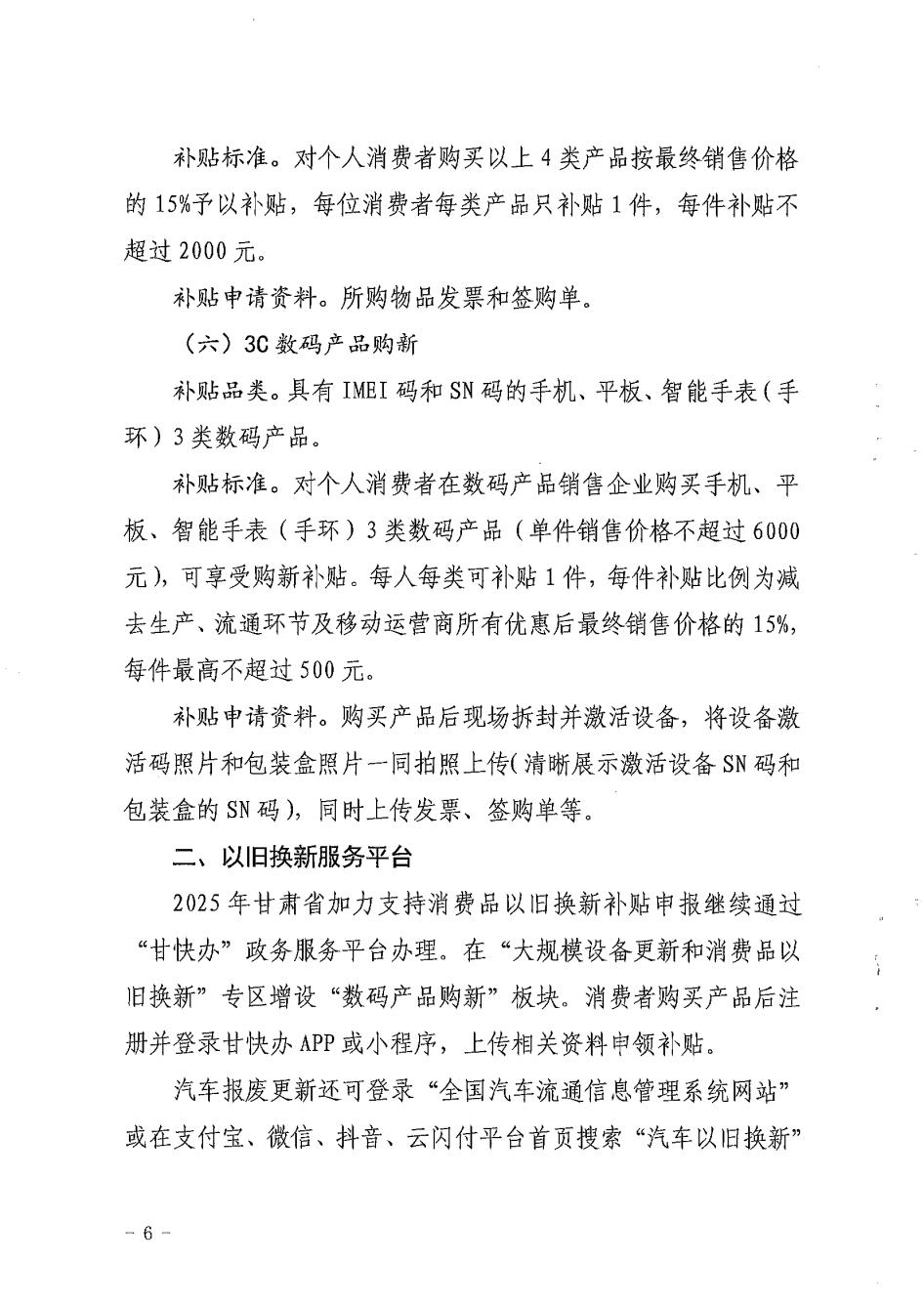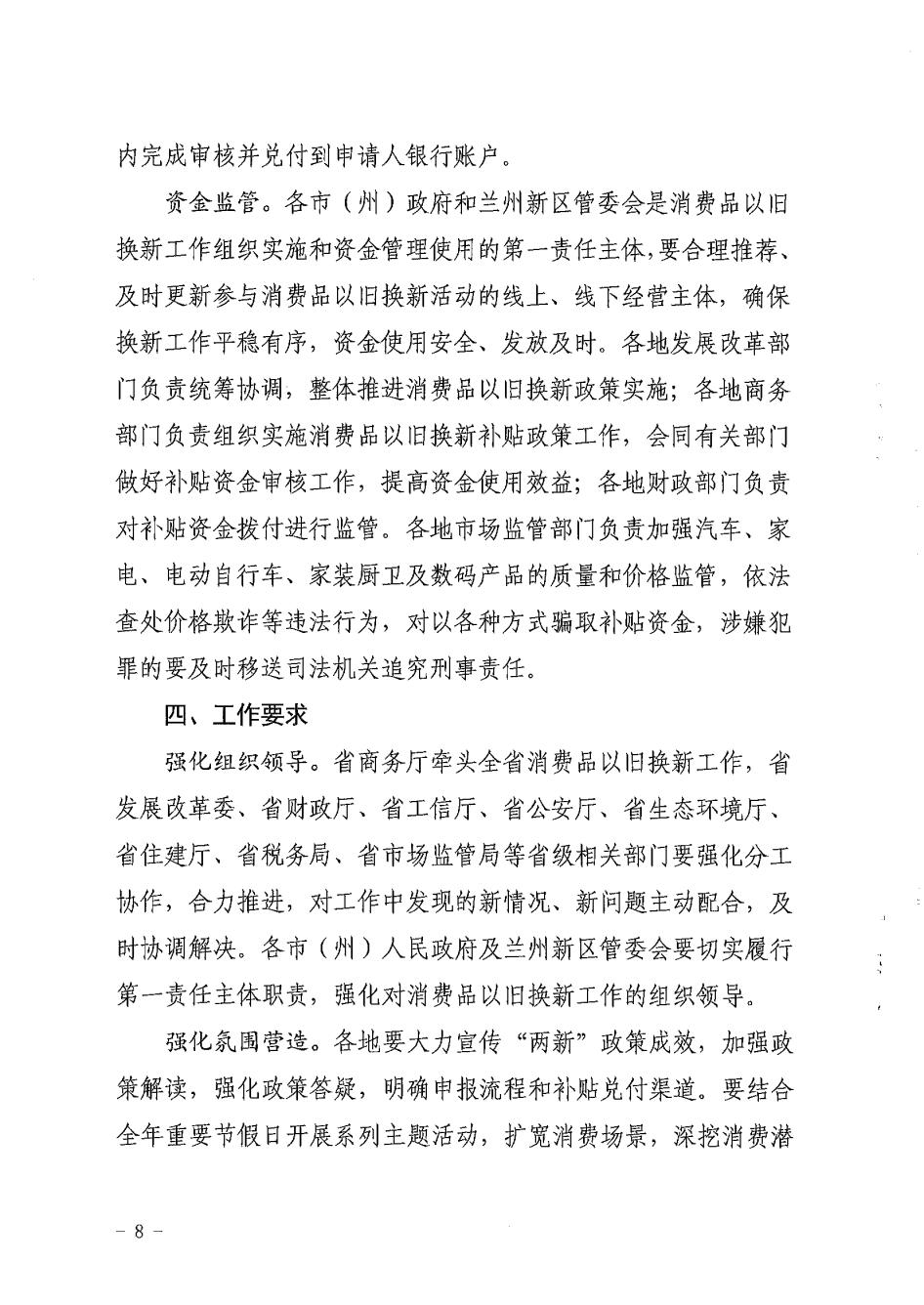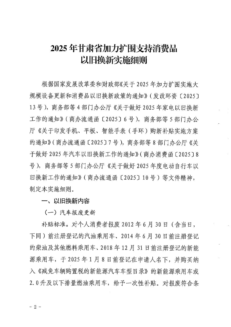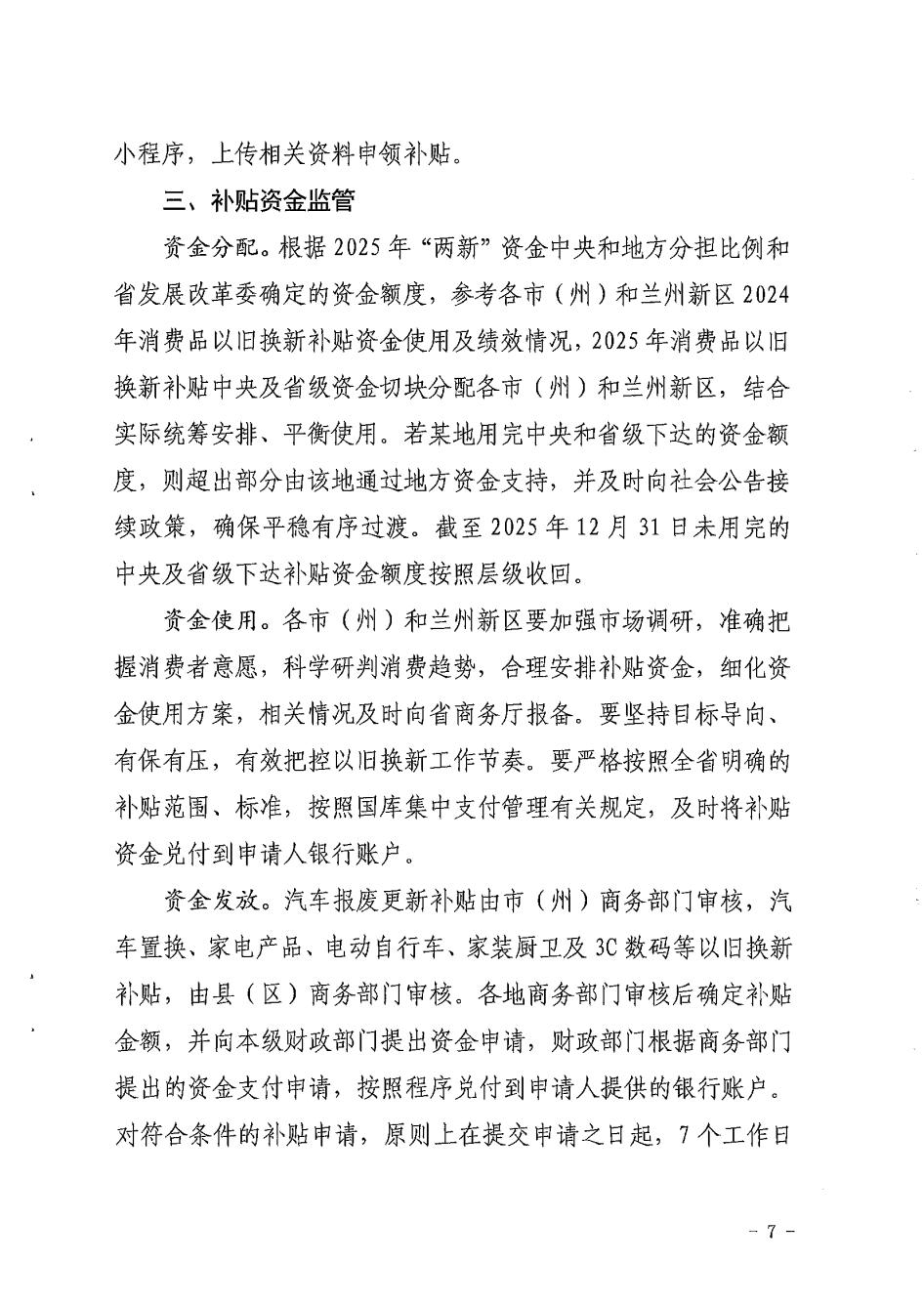 关于印发《2025年甘肃省加力扩围支持消费品以旧换新实施细则》的通知