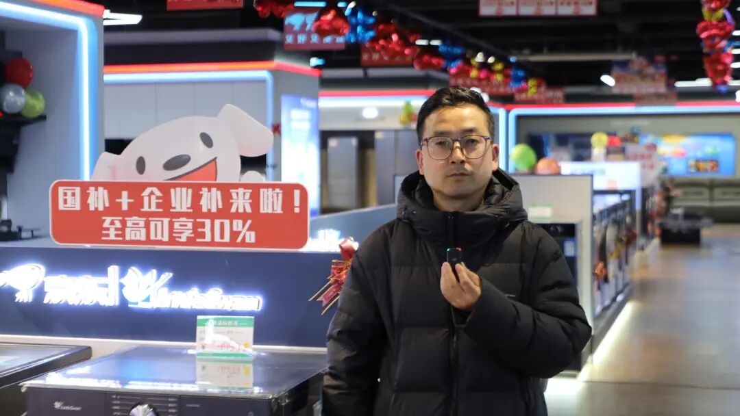 各位观众,我现在在广河县新春年货节的“国补”政府补贴核销点,位于努萨花园的京东家电家具。虽然今天不是周末,但店内依然陆陆续续有顾客前来咨询选购。我们了解到,消费者只要在手机上参与国补抢券活动,到店内选品,核销,核销完成后国补的资金就直接转到客户的账户上面,最高补贴额度相当于售价格的15%。这家店的负责人也告诉我们,广大群众非常愿意为这项政策买单,因为它实实在在地降低了大家的换新成本,也点燃了消费者春节消费的新热点。