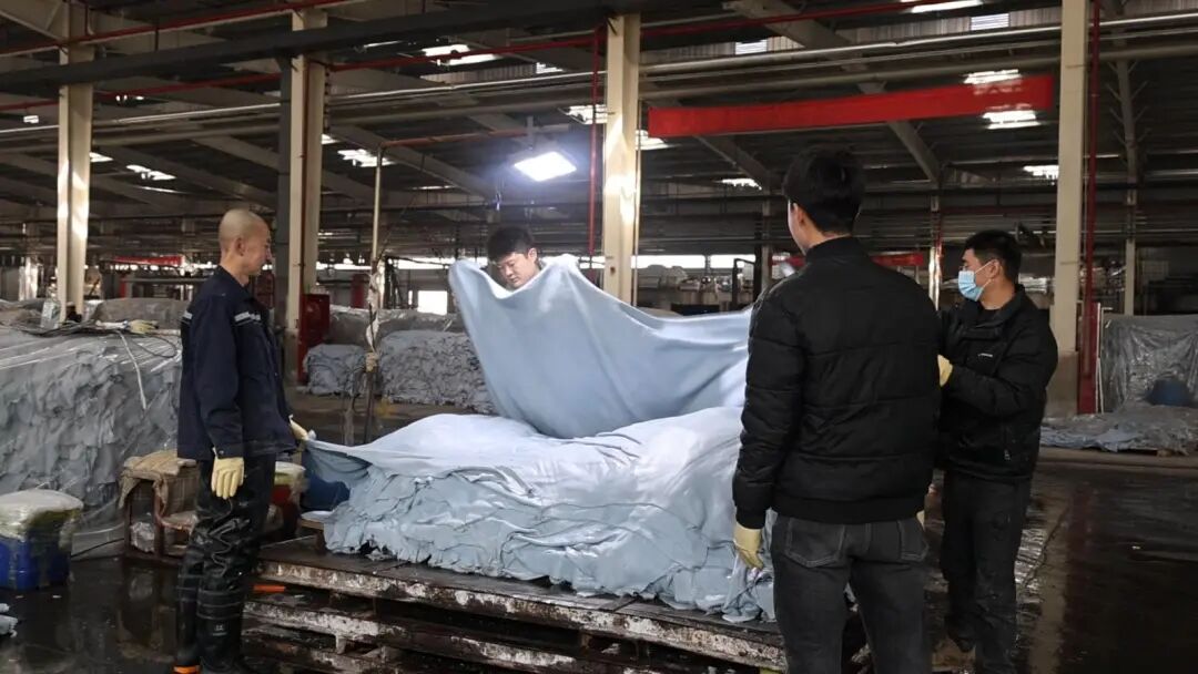日前,记者走进国富皮革生产车间内,机器轰鸣、秩序井然,一张张原皮经过清洁化工艺逐步蜕变为优质成品革。员工马学海正熟练地操作着生产设备,眼神专注、动作娴熟,很难想象,几年前的他还是一个对皮革加工一窍不通的新手。