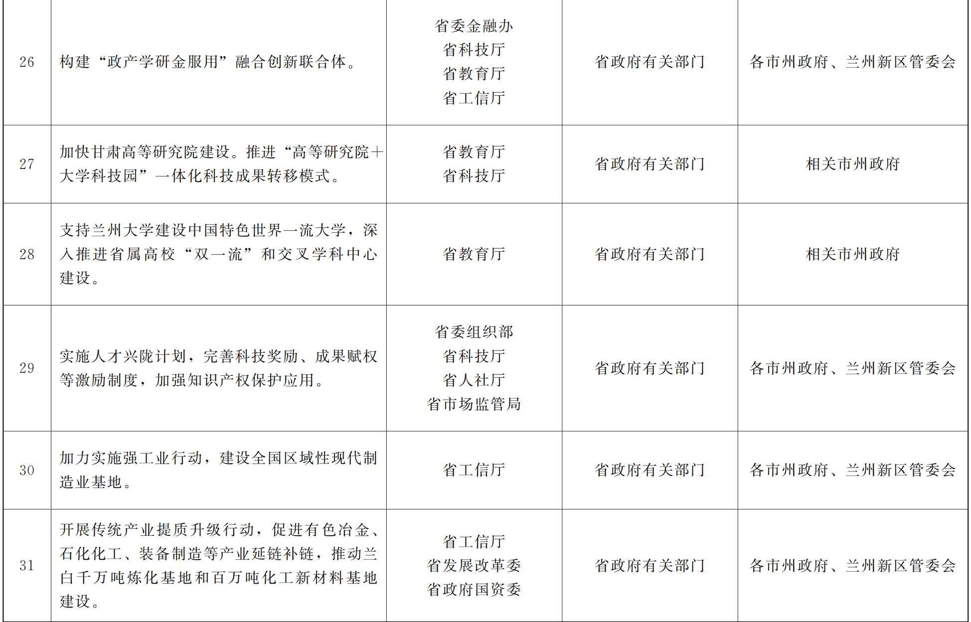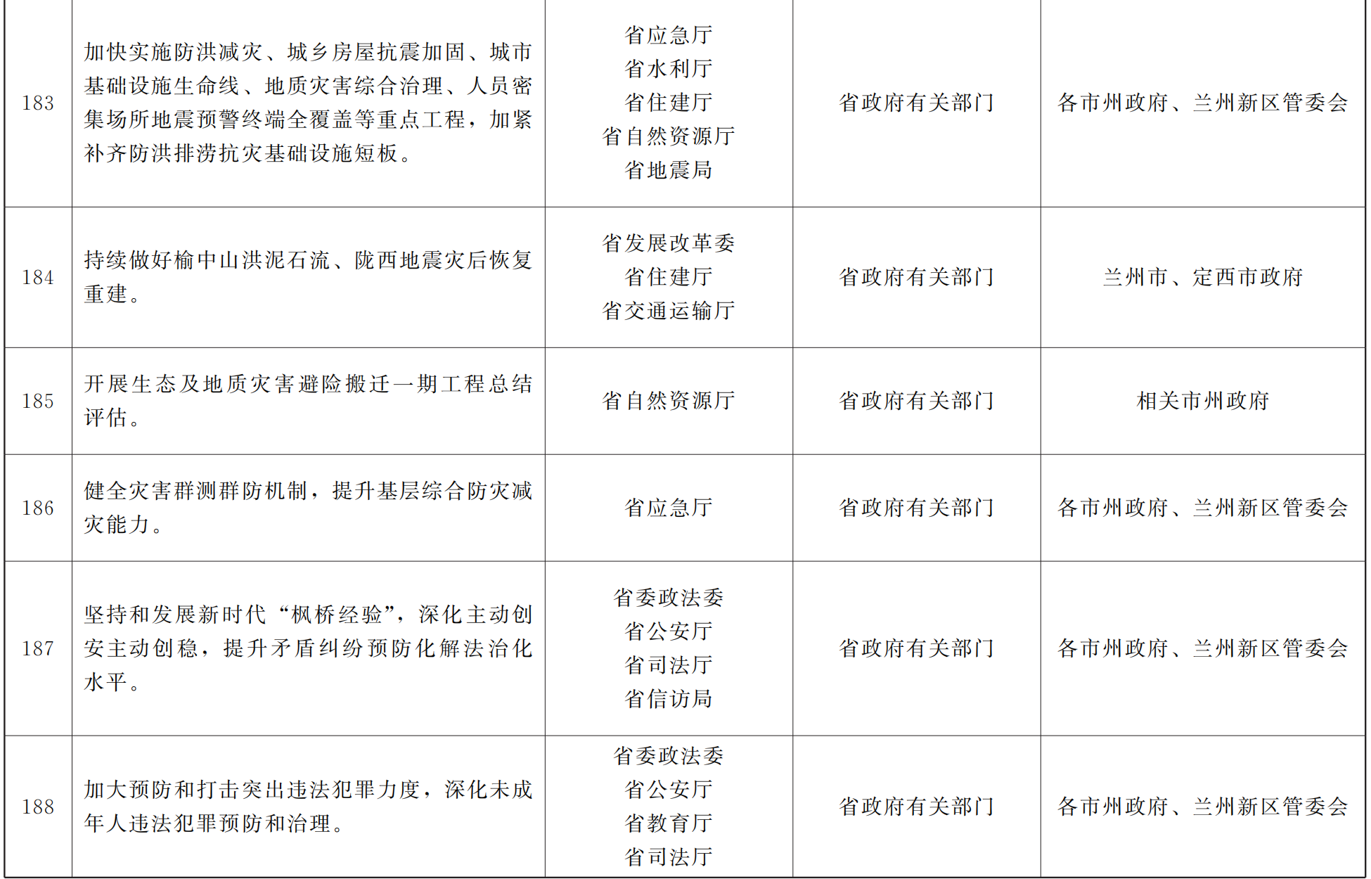 各市、自治州人民政府,甘肃矿区办事处,兰州新区管委会,省政府各部门,中央在甘各单位: