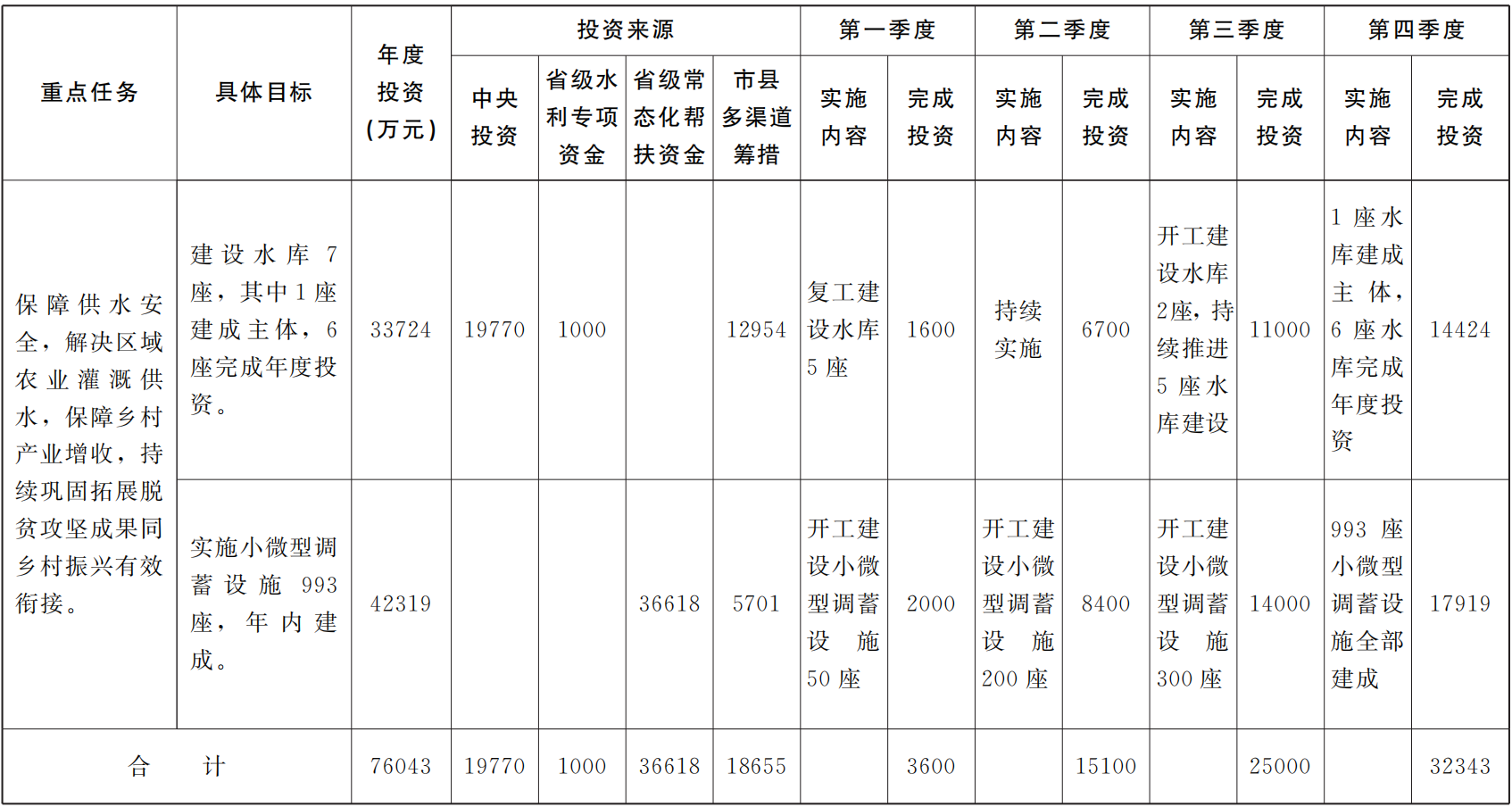 附件:农村水利惠民工程实施计划表