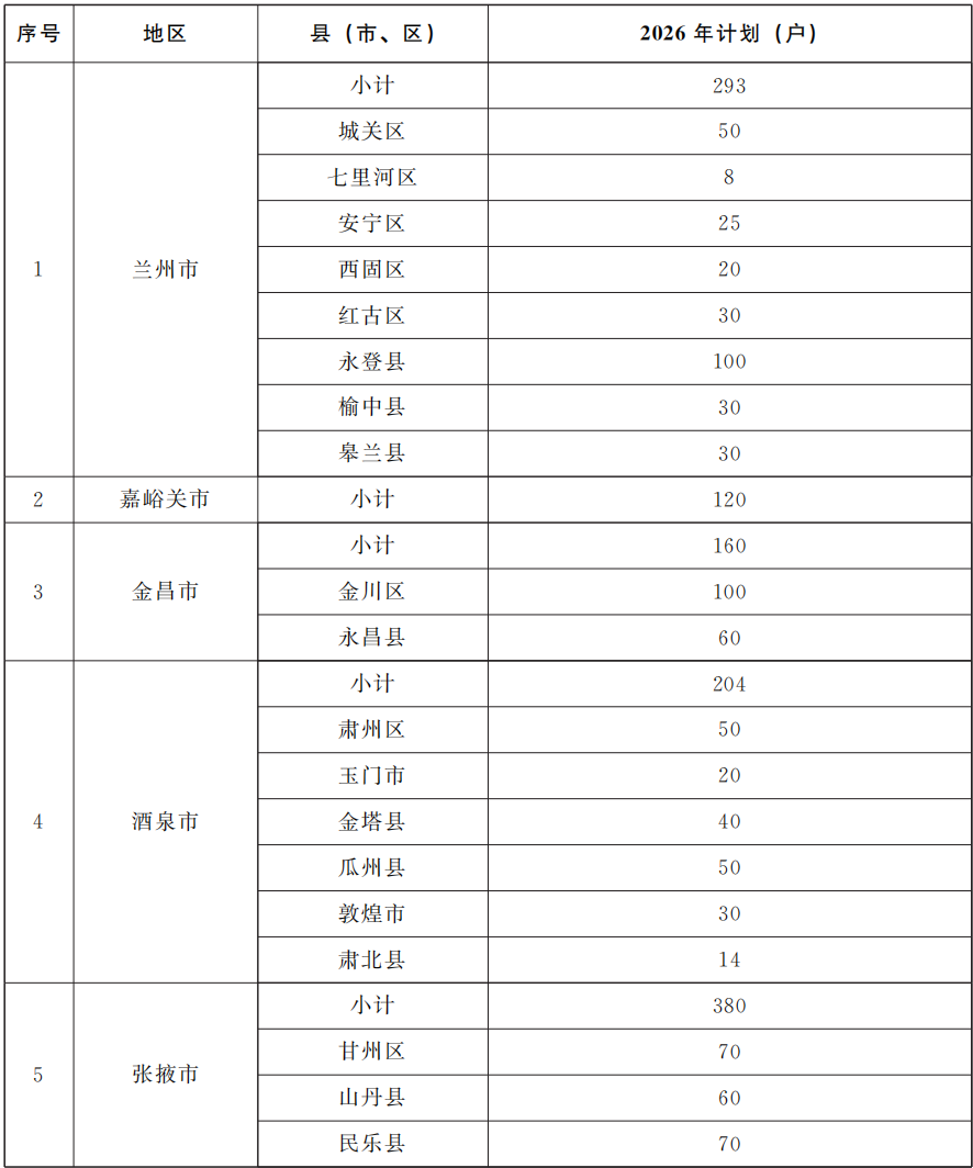 (一)目标任务。完成5000户困难重度残疾人家庭无障碍设施改造。优先安排一户多残、老残一体等特殊困难残疾人家庭,兼顾各类别残疾人需求,以消除困难重度残疾人居家活动、走出家门和融入社会障碍,改善残疾人生活品质、解放残疾人家庭劳力、助推“结对帮扶·爱心甘肃”工程建设。在完成困难重度残疾人家庭无障碍改造基础上,可自筹资金对其他有需求的残疾人家庭设施进行改造。根据各类别残疾人特点、状况与城乡居住环境,尊重残疾人个人意愿,实事求是、一户一策,不搞“一刀切”。