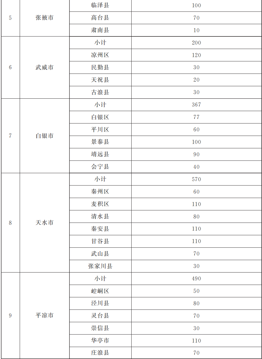 1.确定目标任务(4月底前)。开展岗位需求摸底,向市(州)、兰州新区分解下达目标任务。