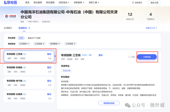 2.选择对应报名分公司及岗位后点击立即投递进行报名,填写相应字段,填写完成后点击立即提交完成报名。