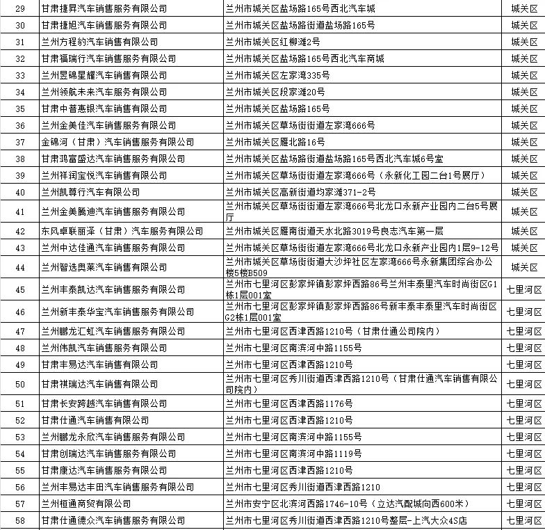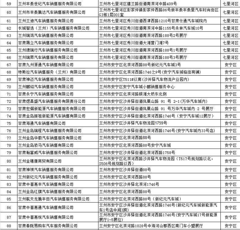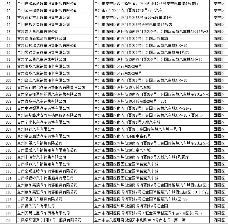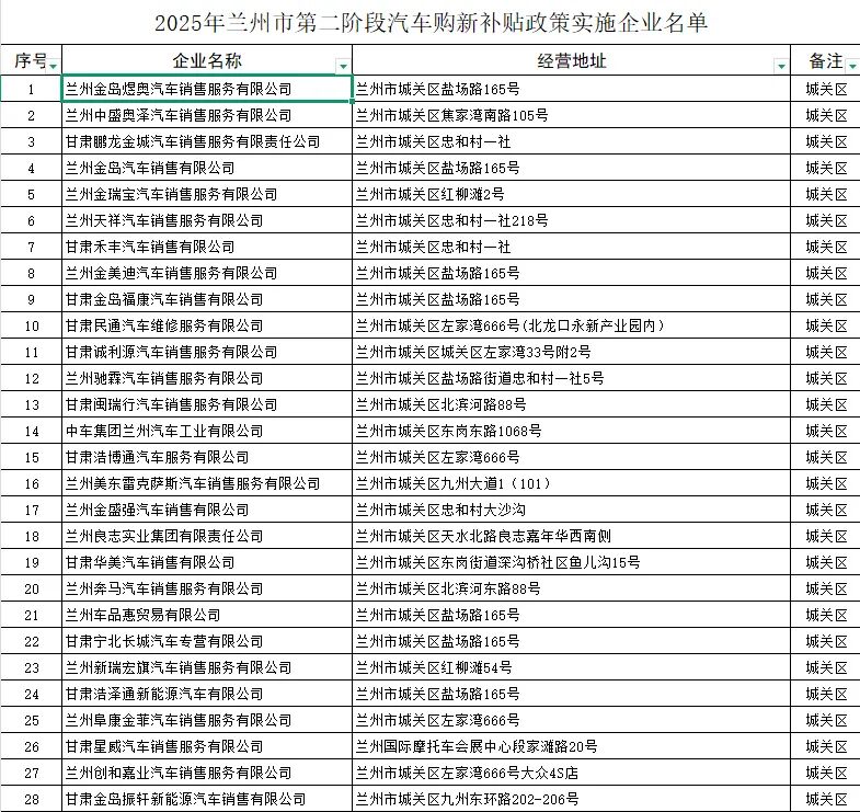 附件:2025年兰州市第二阶段汽车购新补贴政策实施企业名单