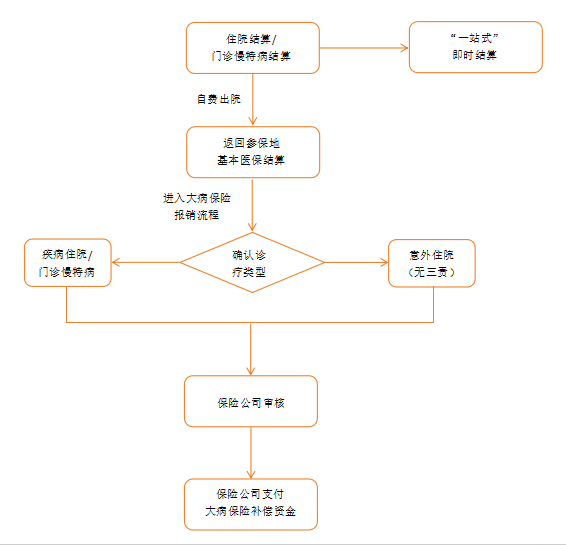 城乡参保居民入院时向医院提交参保证明、身份证明、银行账户等相关信息,出院时在就诊医疗机构实行“一站式”即时结报。非即时结报的参保人员可在当地医保服务中心、定点医院、政务大厅等大病保险服务网点进行报销。