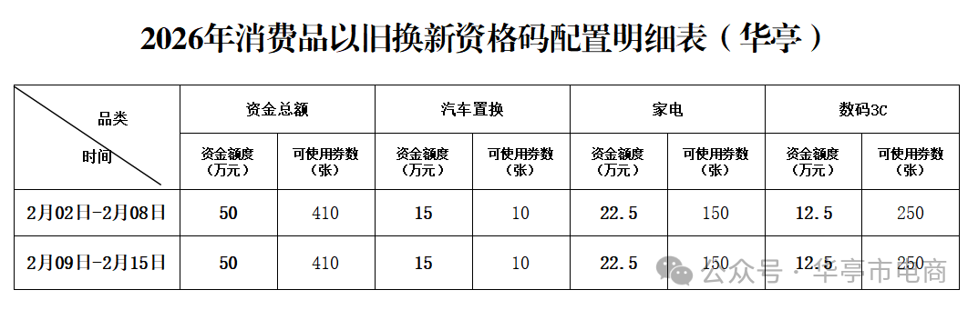 为进一步提升商务领域消费品以旧换新补贴申请透明度,切实做到惠民利企。现将华亭市2026年第四轮、第五轮资格码配置计划公告如下: