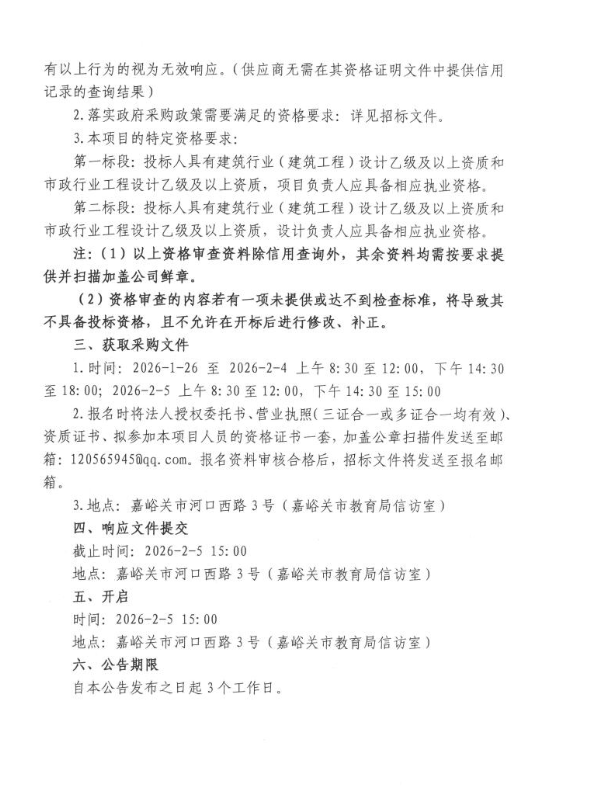 嘉峪关市部分学校基础设施维修改造项目工程设计竞争性磋商公告
