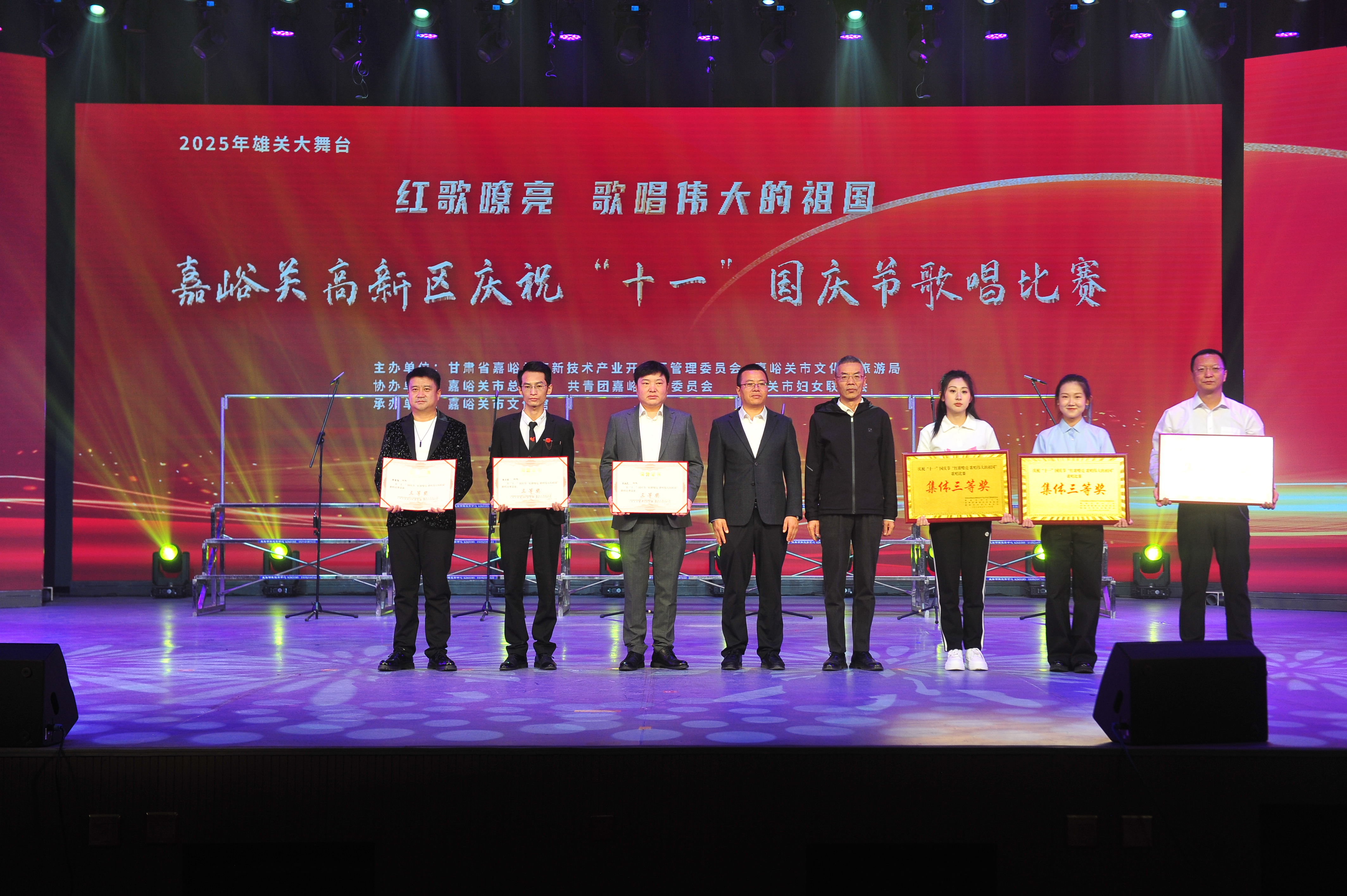 国庆前夕,由嘉峪关高新技术产业开发区管委会、市文旅局主办,邀请市总工会、团市委、市妇联协办,市文化馆承办的“红歌嘹亮,歌唱伟大的祖国”歌唱比赛成功举行。近20家企业、机关代表队,200余名选手齐聚一堂,用最深的赤诚与最美的旋律,为祖国献上炽热颂歌。 比赛现场高潮迭起,激情澎湃。甘肃东兴铝业有限公司独唱《红旗飘飘》豪迈铿锵,唱出对盛世华夏的自豪;嘉峪关索通预焙阳极有限公司36人代表队以《没有共产党就没有新中国》《走向复兴》磅礴之声,激荡起全场信念力量;嘉峪关澄宇金属材料有限责任公司在铿锵合唱《中国军魂》之外,带来别具匠心的葫芦丝独奏《再唱山歌给党听》,传统乐器演绎红色深情,令观众耳目一新。 最终,高新区管委会机关代表队41人的大合唱《我们走在大路上》《团结就是力量》以雄浑之声将比赛推向顶点,有力展现高新区建设者团结奋斗的精神风貌。 经过激烈角逐与评审,嘉峪关索通预焙阳极有限公司合唱团斩获本次比赛团体一等奖,甘肃祁牧乳业有限公司曹蜀嘉斩获比赛个人一等奖;嘉峪关臻泰产业投资有限责任公司、甘肃祁牧乳业有限责任公司斩获本次比赛团体二等奖,高新区管委会苏姗斩获比赛个人二等奖;嘉峪关澄宇金属材料有限责任公司、甘肃弘源央厨食品有限公司、高新区妇工委、团委斩获本次比赛团体三等奖,嘉峪关澄宇金属材料有限责任公司俞文君、甘肃东兴铝业有限公司朱振杰、陈勇智斩获比赛个人三等奖。 此次唱响的红歌是砥砺高新区人奋进的鼓点,我们将坚守初心使命,传承红色基因,赓续红色血脉、熔铸奋斗精神的高地,凝聚全高新区企业共同奋斗的力量,以歌叙怀,吹响新辉煌的行动号角。