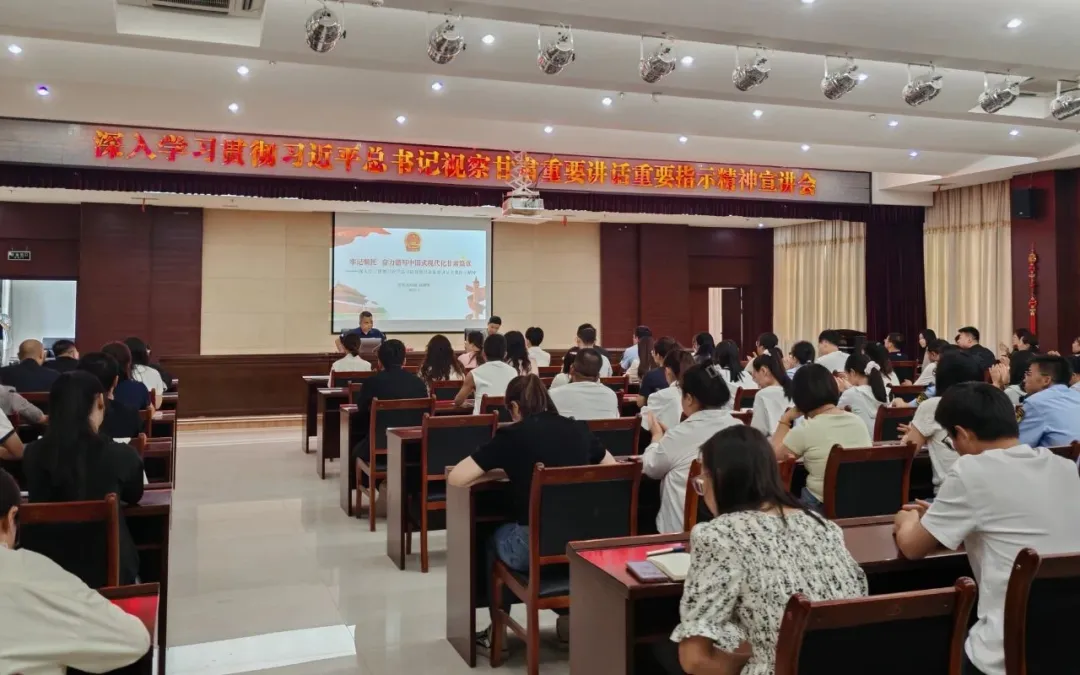 为深入学习贯彻习近平总书记视察甘肃重要讲话重要指示精神,推动党员干部统一思想、凝聚共识、激发干劲。7月14日,根据市委宣传部统一部署,由高新区党工委牵头举办专题宣讲会。市委讲师团团长赵朝晖同志受邀作专题辅导报告,民政局、林草局、档案馆、退役军人事务局、公共资源交易中心、卫健委、统计局、国调队、商务局、生态环境局、应急管理局、城市管理局、招商引资服务中心等14家单位的100余名党员干部参加。