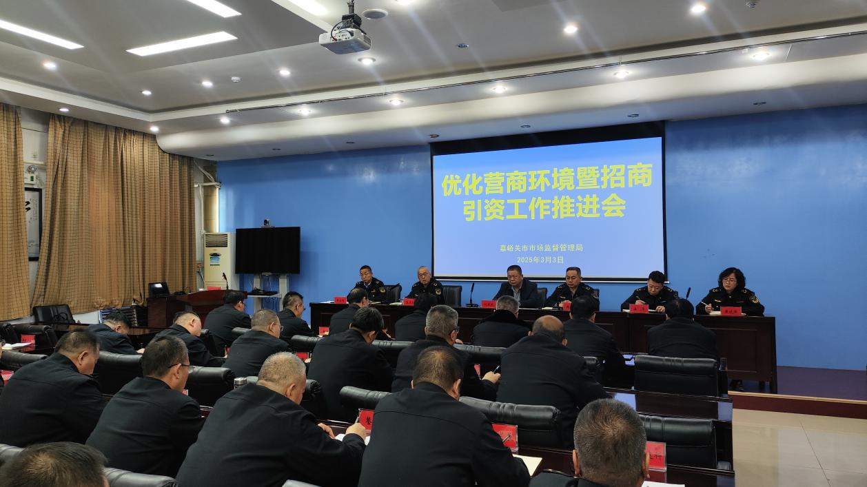 3月3日,嘉峪关市市场监督管理局召开优化营商环境暨招商引资工作推进会,局领导班子成员、科级以上干部50余人参加了会议。