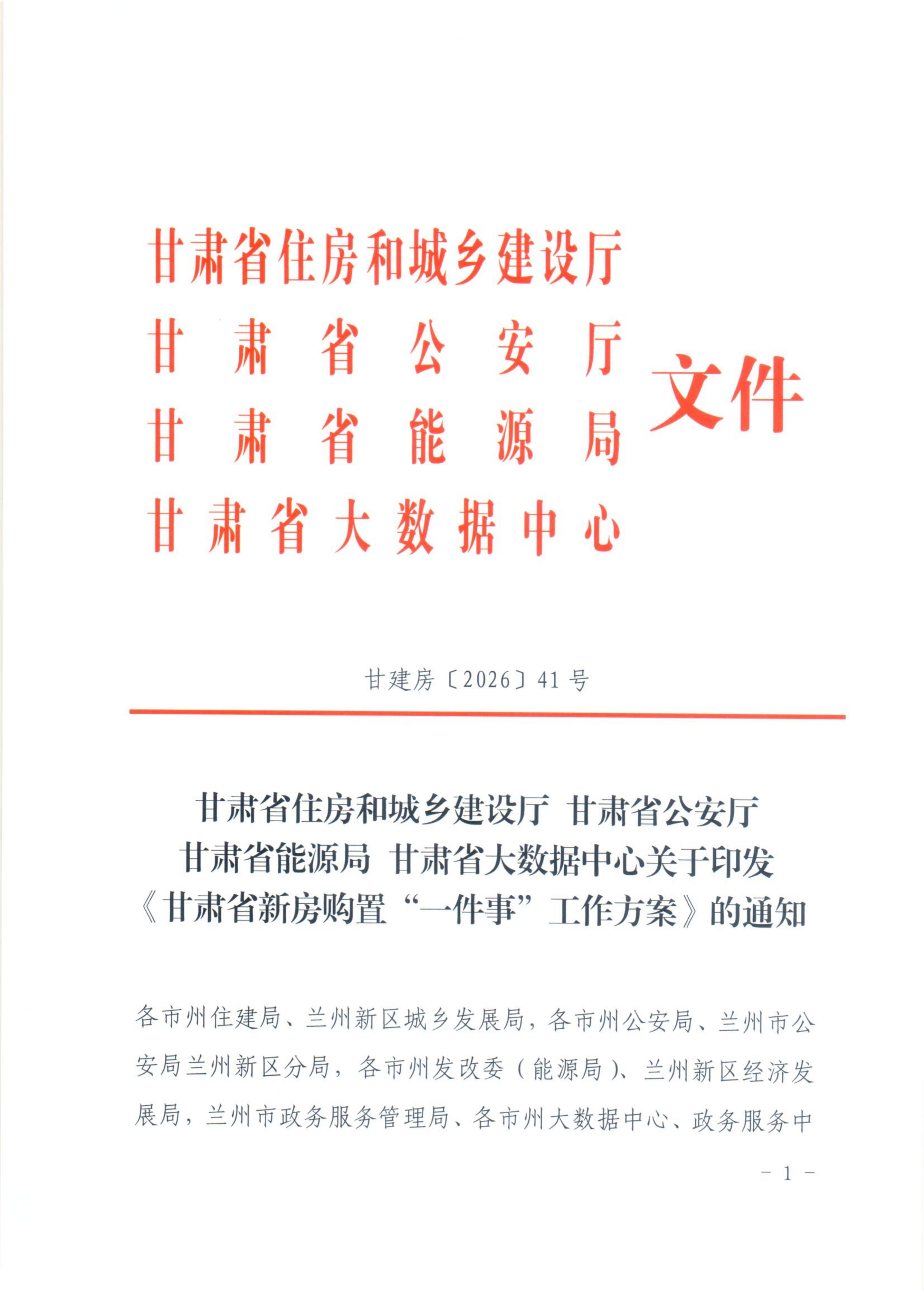 关于印发《甘肃省新房购置“一件事”工作方案》的通知
