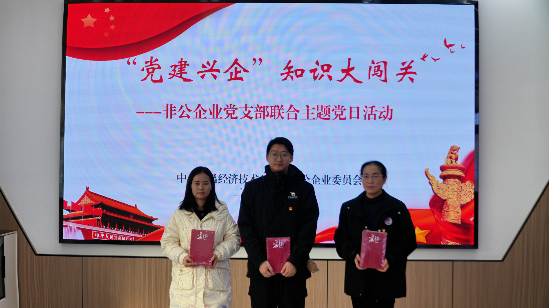 本次活动紧扣党的二十届四中全会精神和“十五五”规划核心要义,创新设置“理论学习+知识竞答+支部评比”三大环节。在闭卷答题现场,党员们奋笔疾书,试卷涵盖党的创新理论、党章党规、非公企业党建实务等内容,其中3名党员凭借扎实的理论功底脱颖而出,分别斩获前三名。