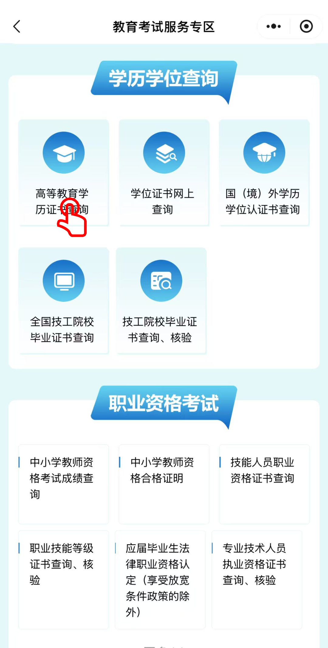 第二步:下滑找到“学历学位查询”版块,根据需求点击相应服务,按要求输入信息即可轻松查询。