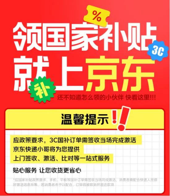 根据国家补贴政策要求,手机等数码产品购新补贴需要现场拆盒激活。京东快递小哥在送货上门时,会协助消费者快速完成现场激活验收,确保消费者能够便捷地享受到补贴带来的实惠。