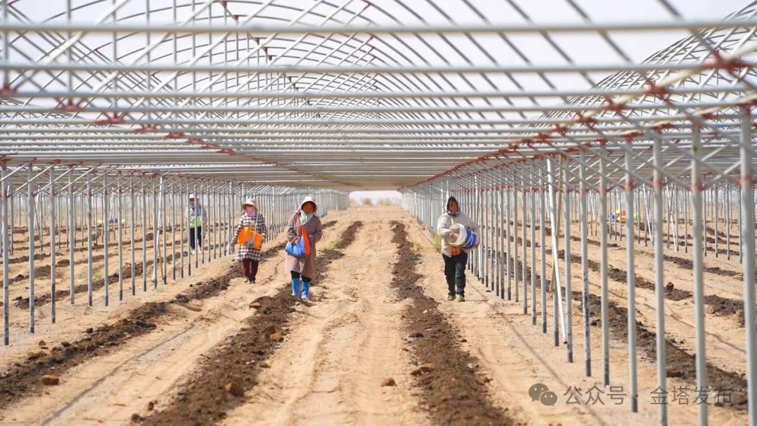 金塔县鼎新镇党委副书记、镇长王永飞说:“自2024年该项目签约落地后,鼎新镇紧盯园区企业存在的要素保障、资金、用工等实际困难,成立专班、上下衔接、专人盯办,并配套完善‘三通一平’,水资源论证和四个‘水盆子’等基础工程。目前二期计划5月下旬栽苗园区,预计年产优质蜜瓜2700万斤,实现年产值8000万元以上,增加村集体经济收入30万元以上,通过定向务工可为周边群众提供就业岗位200余个,实现劳务收入600余万元。”