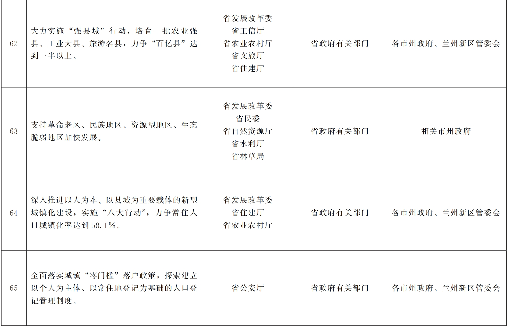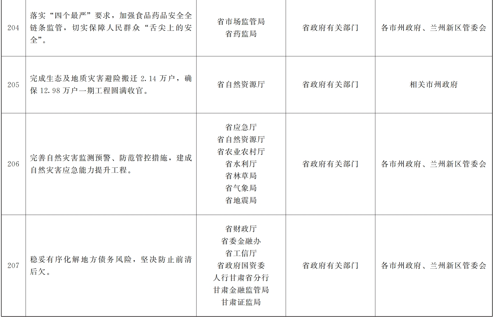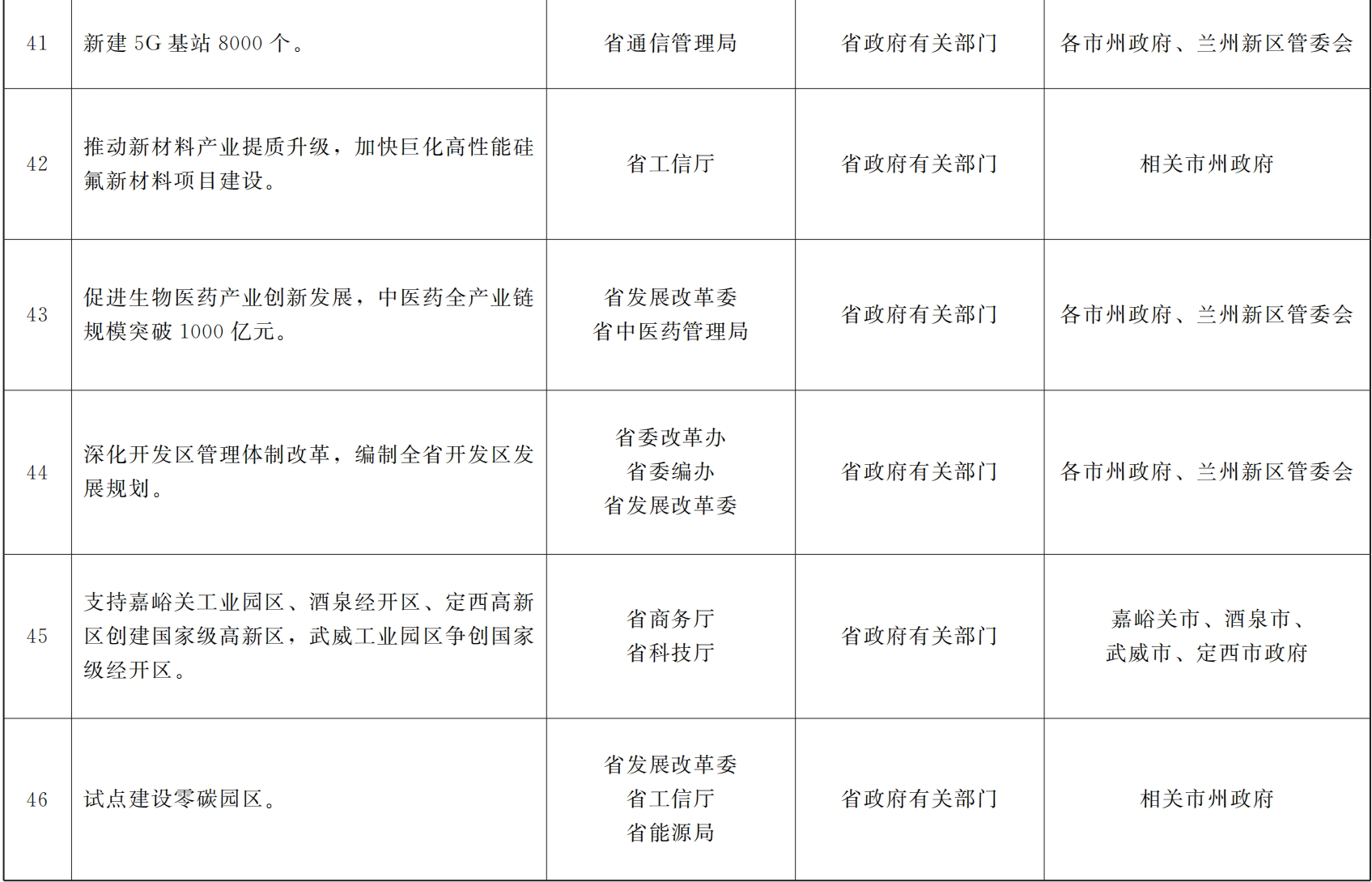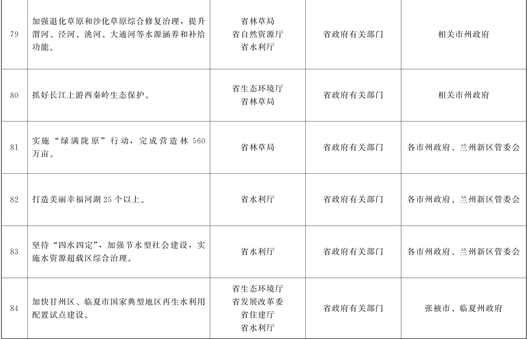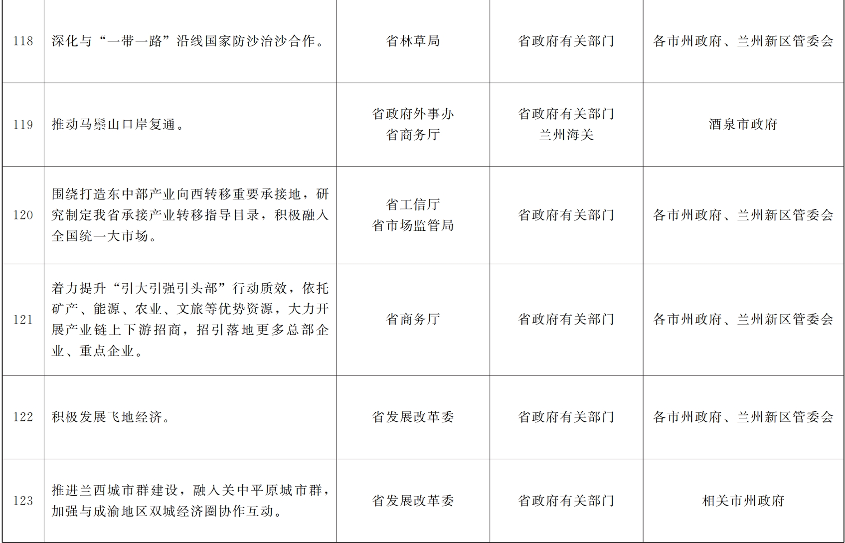 各市、自治州人民政府,甘肃矿区办事处,兰州新区管委会,省政府各部门,中央在甘各单位: