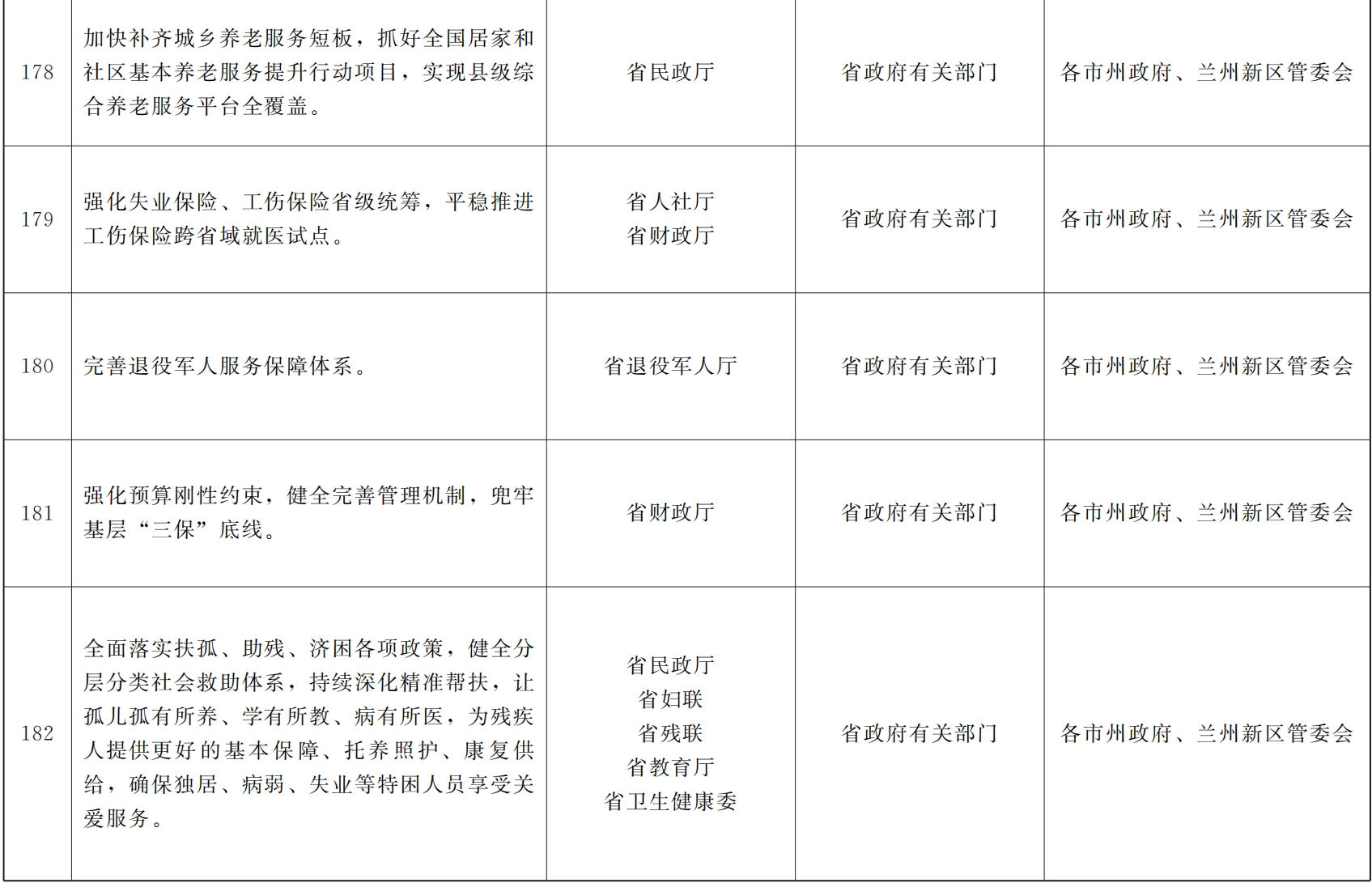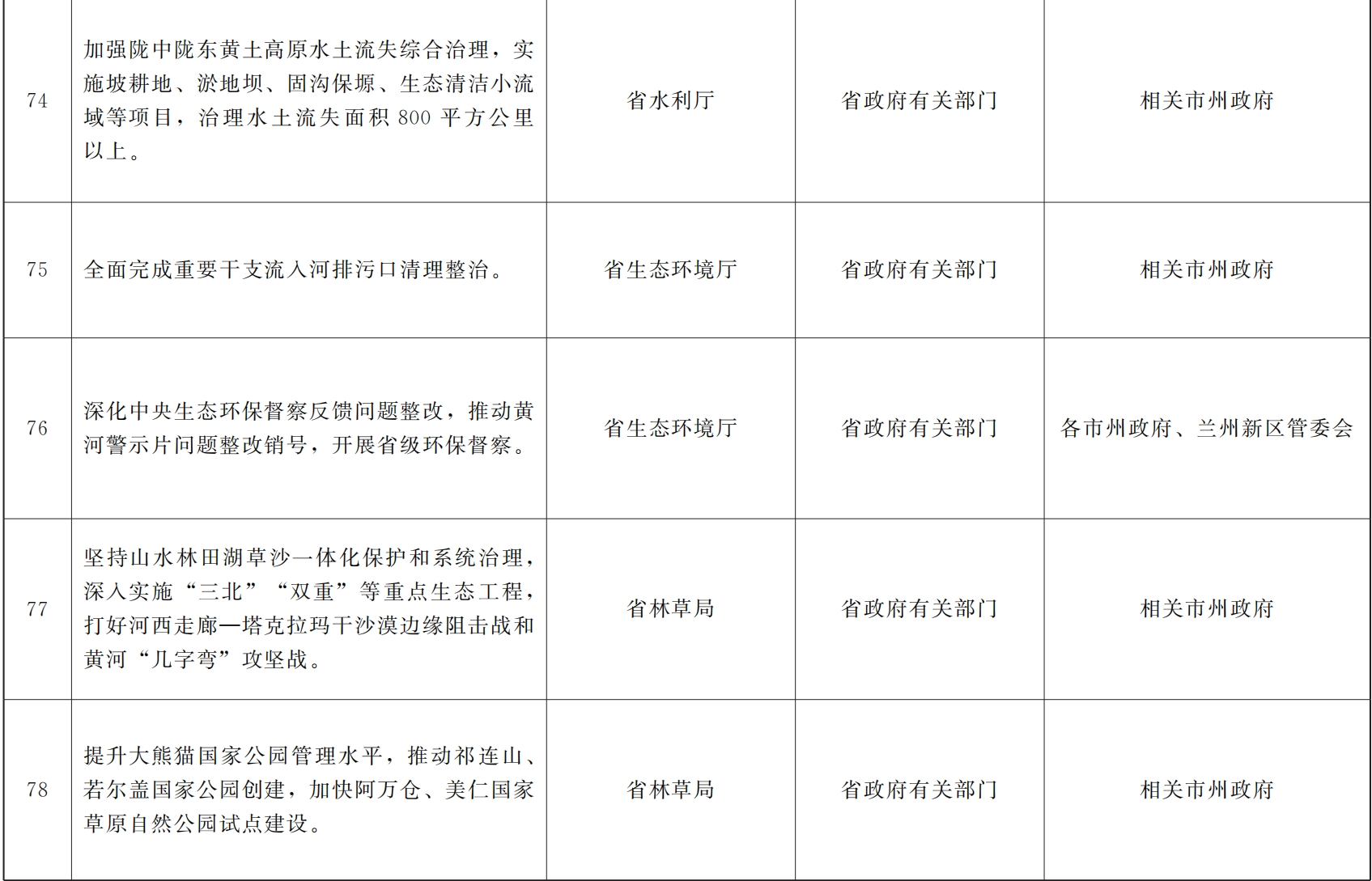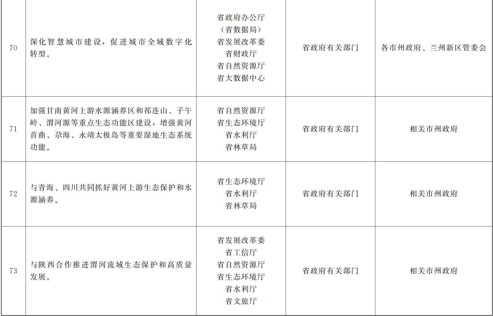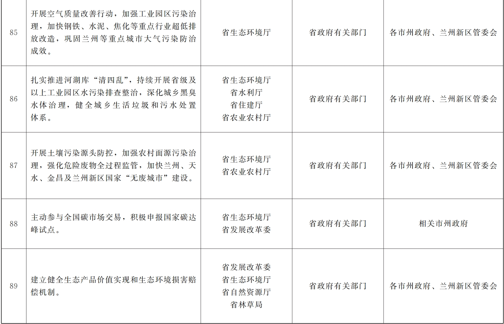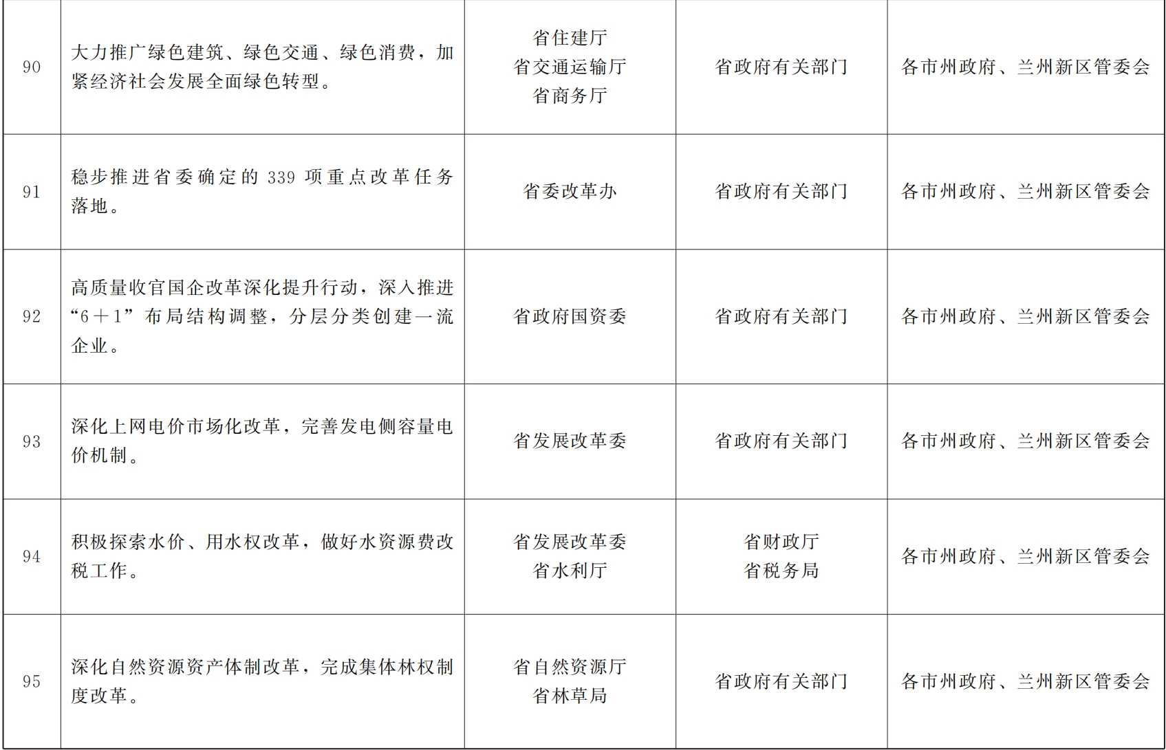 各市、自治州人民政府,甘肃矿区办事处,兰州新区管委会,省政府各部门,中央在甘各单位: