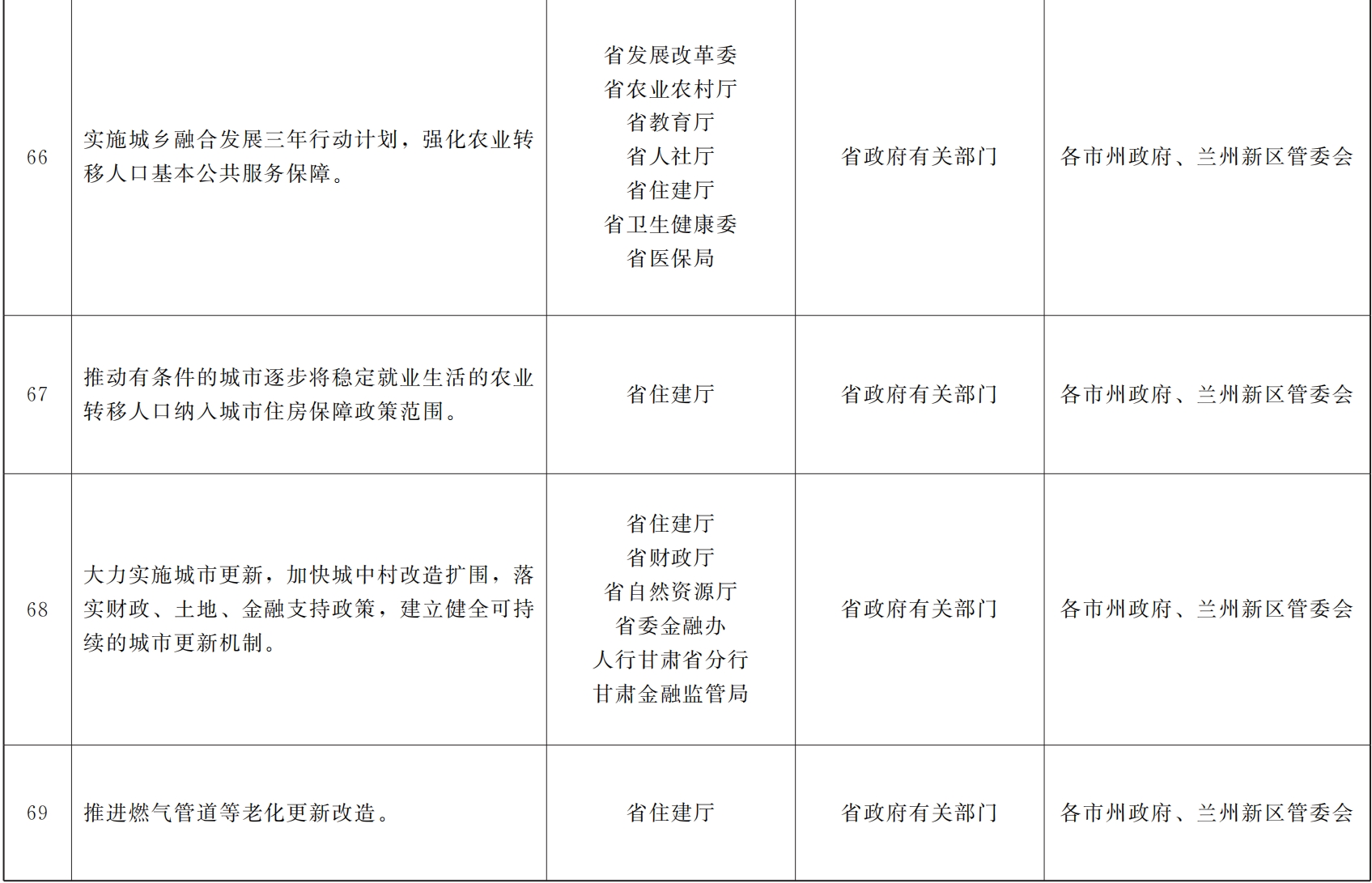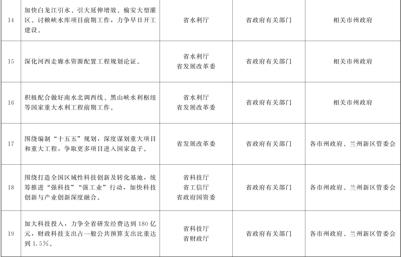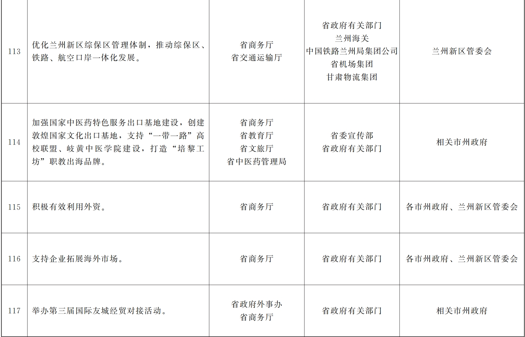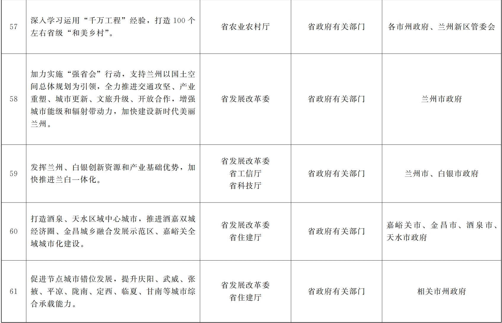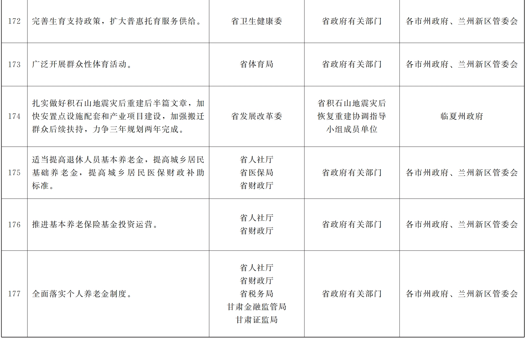 各市、自治州人民政府,甘肃矿区办事处,兰州新区管委会,省政府各部门,中央在甘各单位: