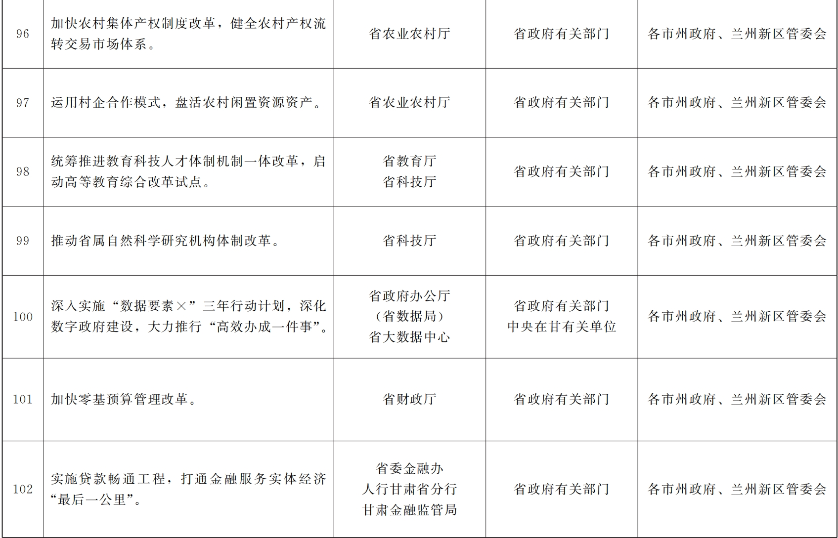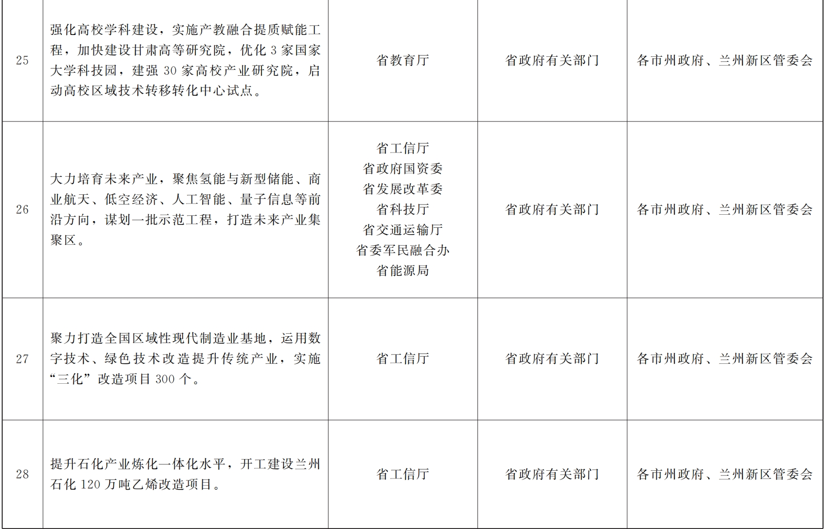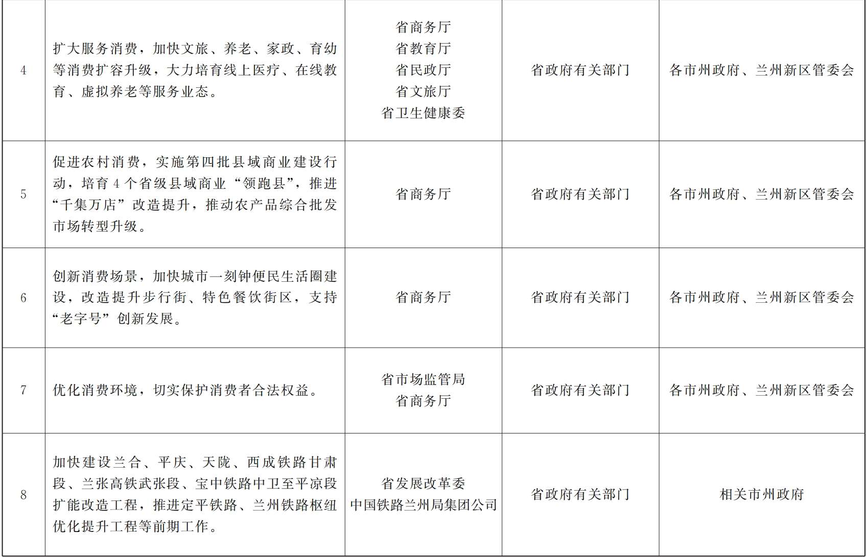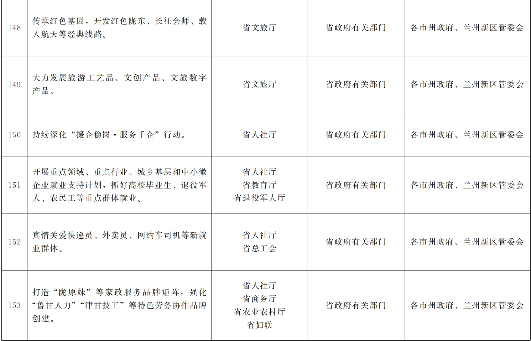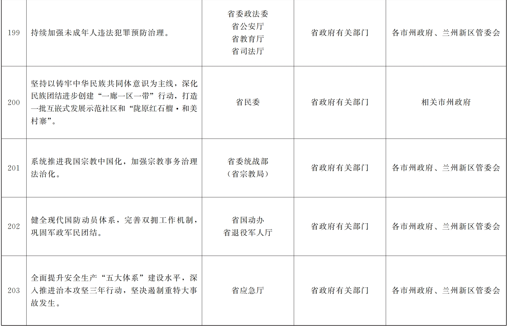 各市、自治州人民政府,甘肃矿区办事处,兰州新区管委会,省政府各部门,中央在甘各单位: