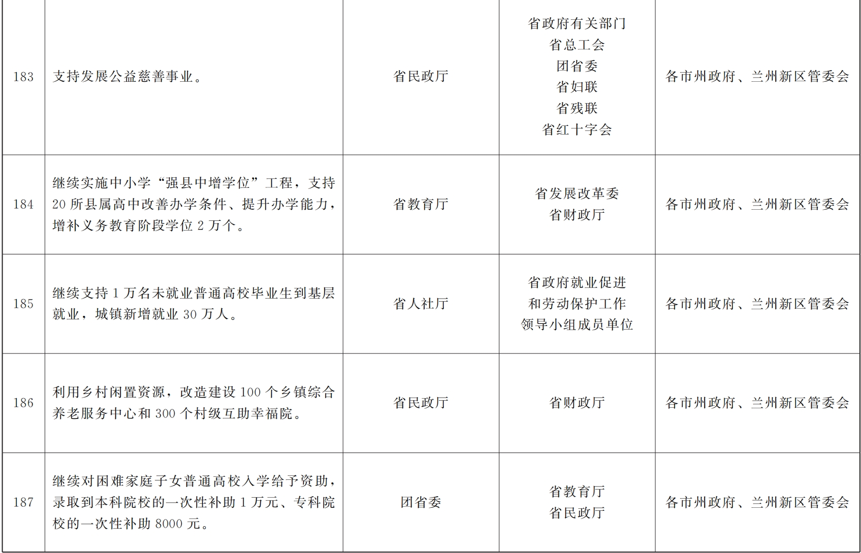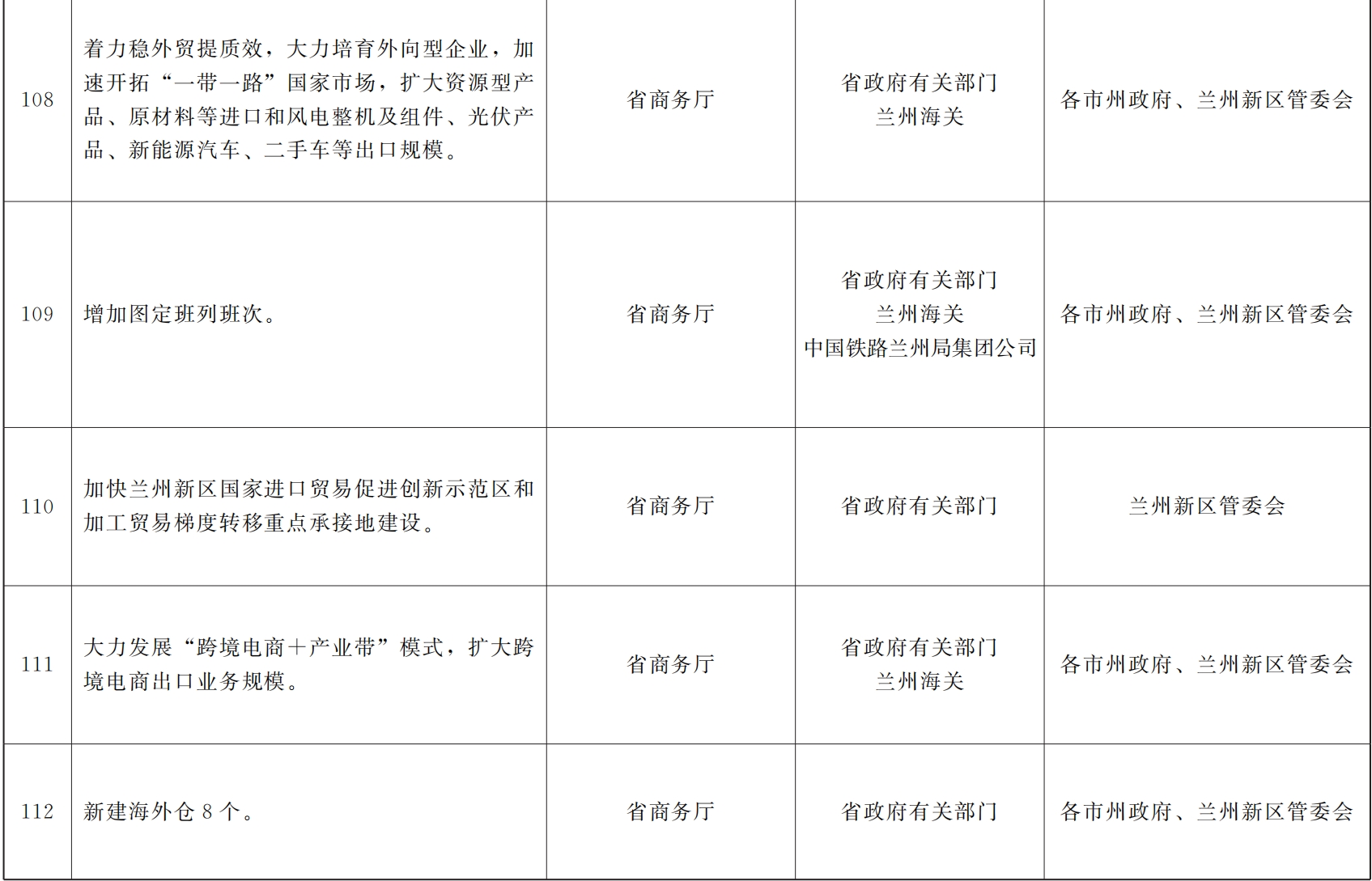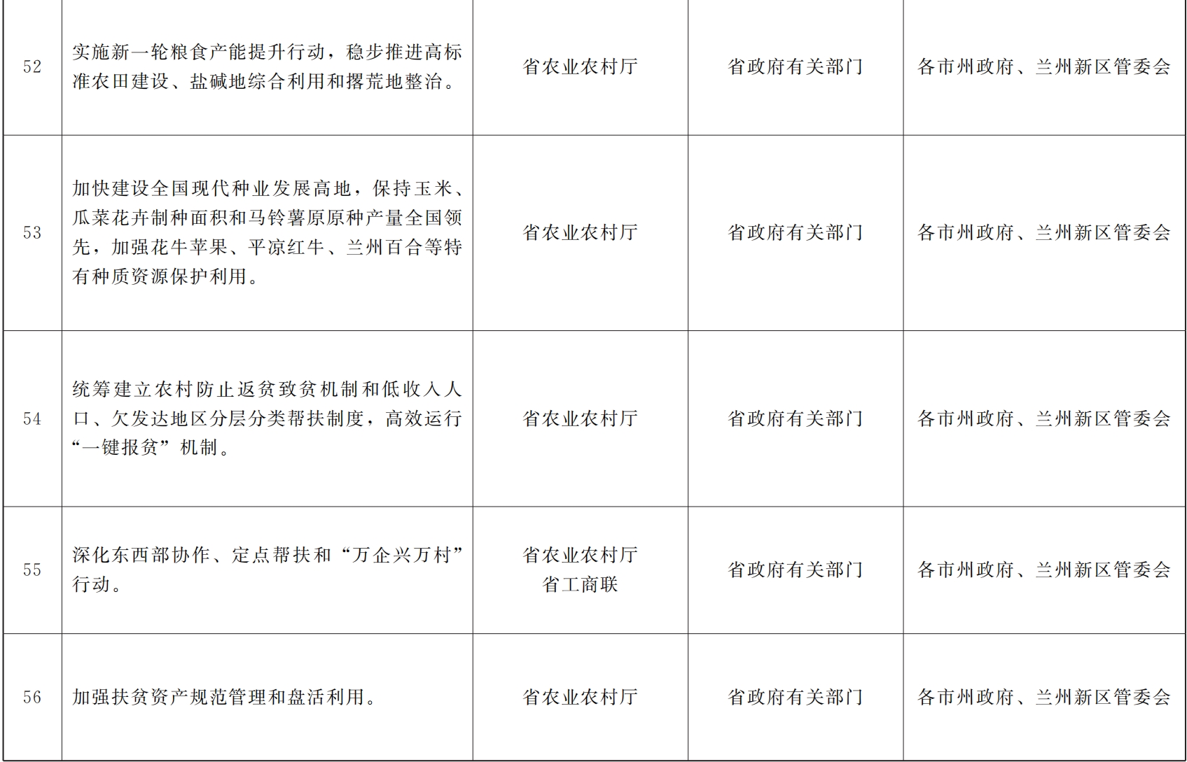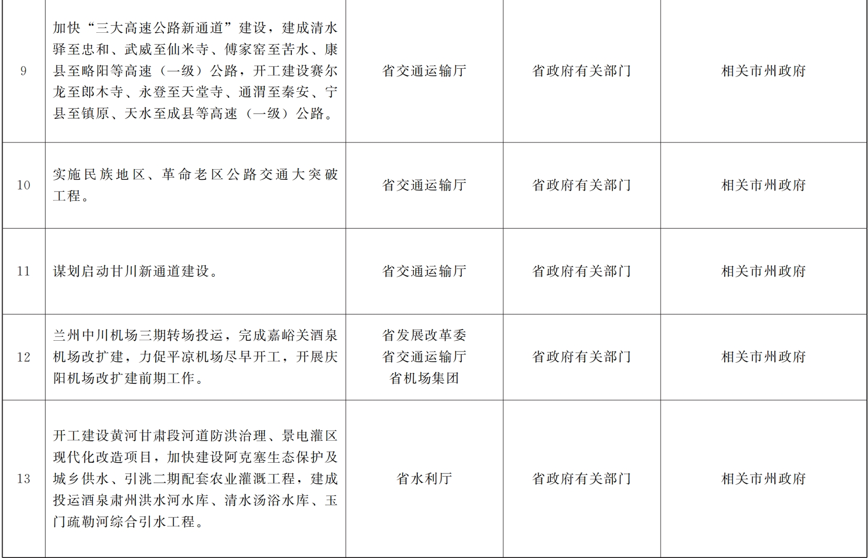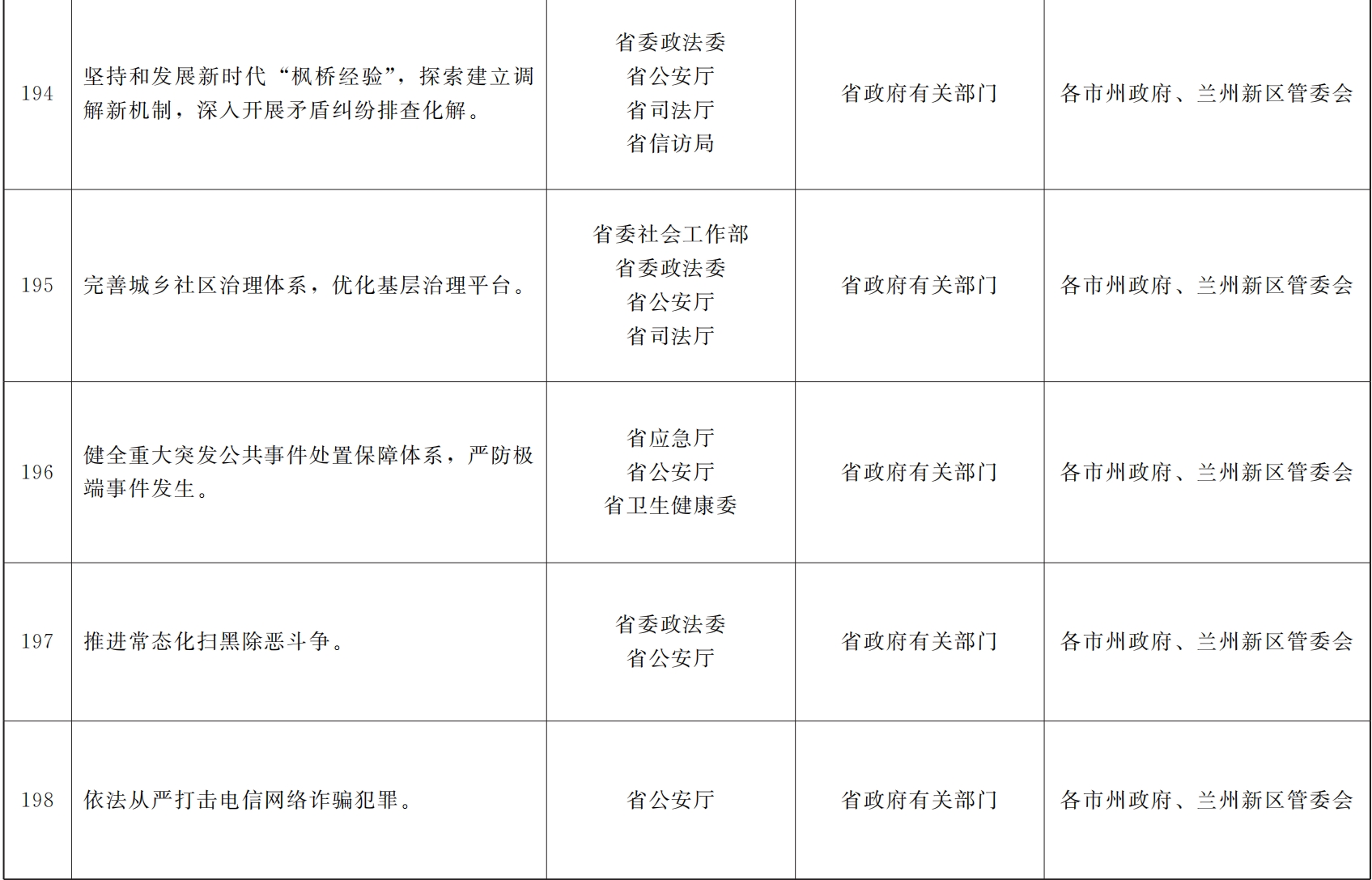 各市、自治州人民政府,甘肃矿区办事处,兰州新区管委会,省政府各部门,中央在甘各单位: