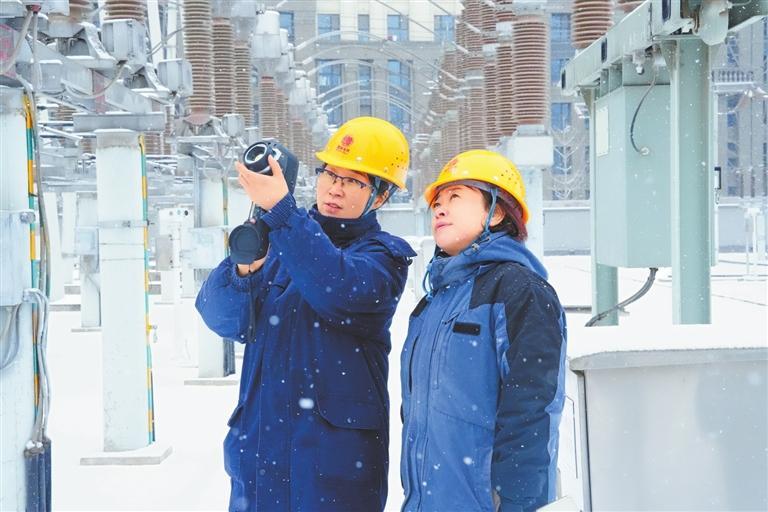 国网兰州供电公司变电运维中心工作人员进行雪天特巡,全力确保电网运行平稳和广大客户供电可靠。(通讯员李柳雅)