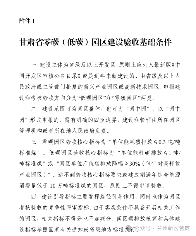 附件:1.甘肃省零碳(低碳)园区建设验收基础条件