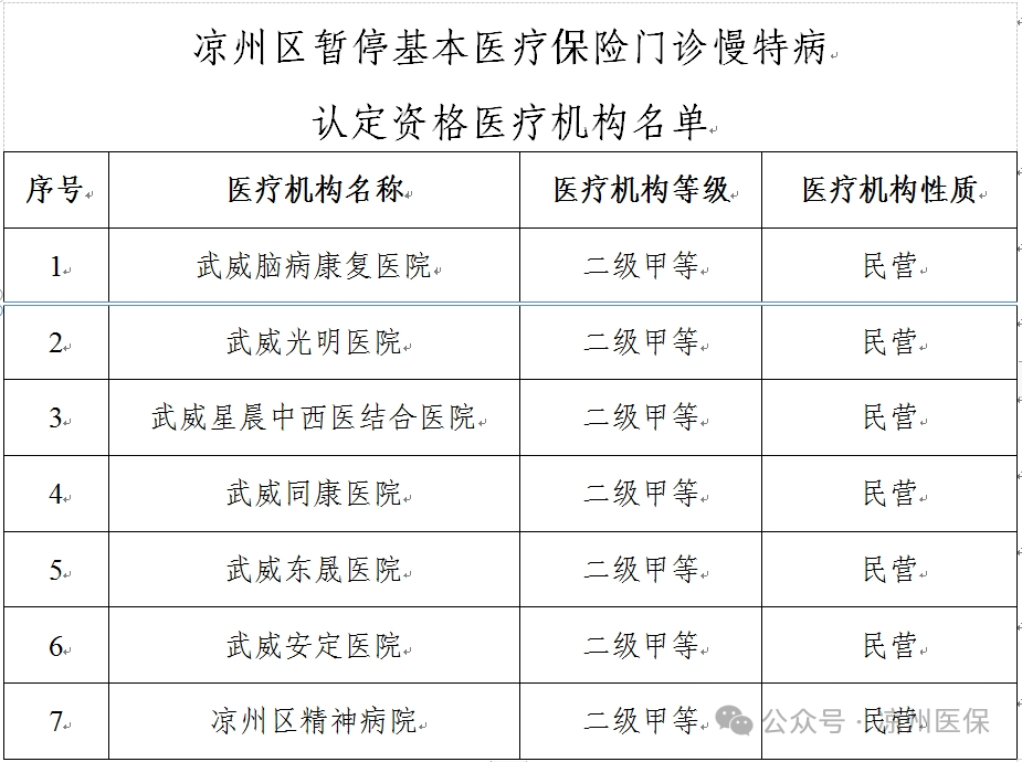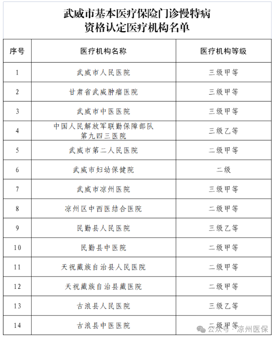 一、凉州区本地住院职工、居民门诊慢特病资格认定定点医疗机构: