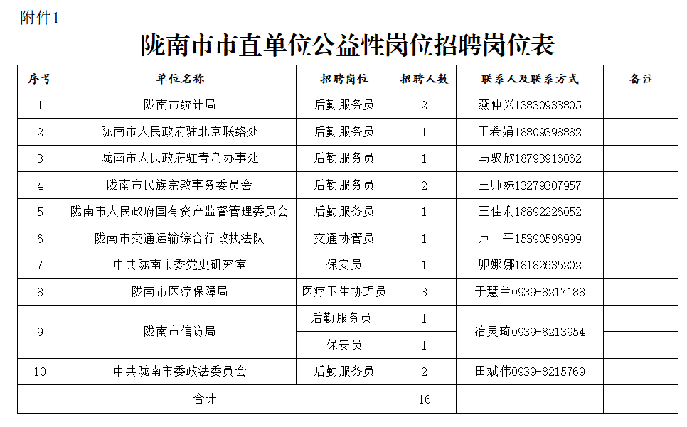 为促进全市就业困难人员充分就业,搭建供需双方对接平台,根据《关于进一步加强和规范公益性岗位开发管理工作的通知》(甘人社通〔2020〕126号)和《陇南市人力资源和社会保障局 陇南市财政局关于进一步规范公益性岗位开发管理工作的通知》(陇人社发〔2023〕300号),结合市直有关单位公益性岗位设置情况,现将近期公益性岗位招聘信息公告如下: