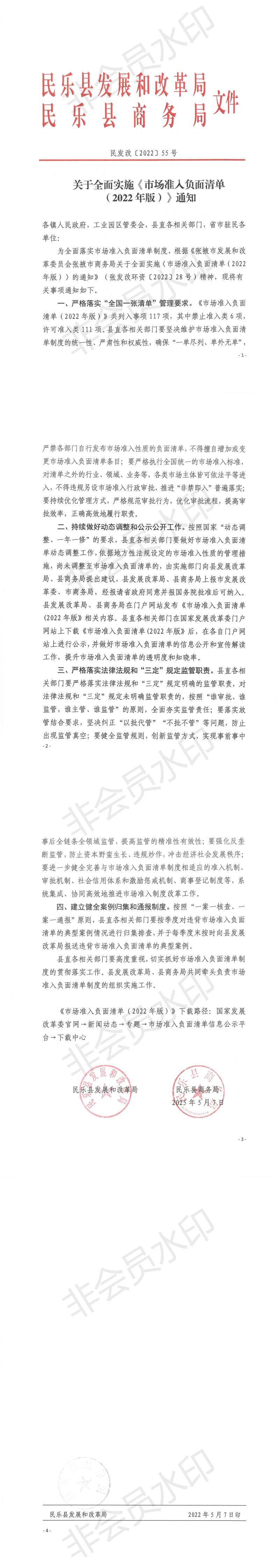 民乐县关于全面试试《市场准入负面清单(2022年版)》的通知