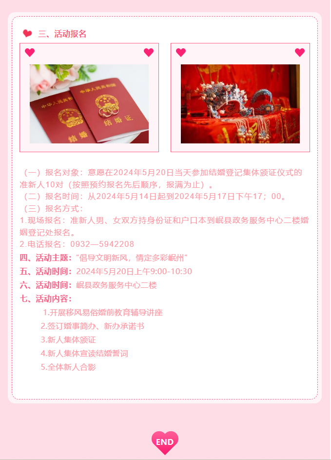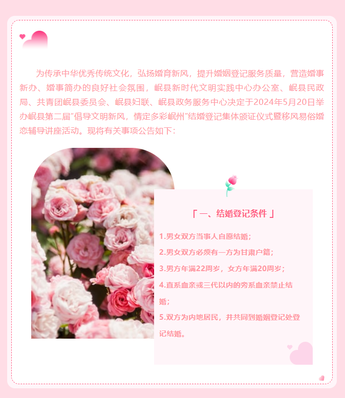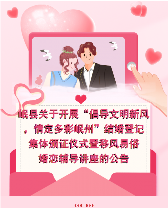 岷县关于开展“倡导文明新风,情定多彩岷州”结婚登记集体颁证仪式暨移风易俗婚恋辅导讲座的公告
