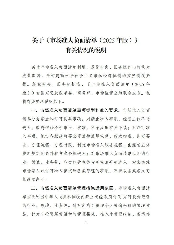 点击下方“阅读原文”查看《市场准入负面清单(2025年版)》