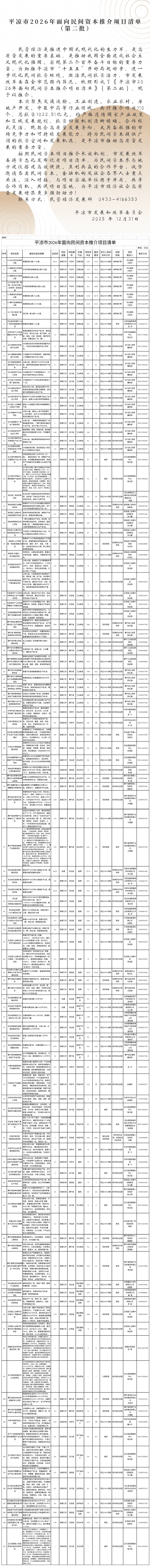 平凉市2026年面向民间资本推介项目清单(第二批)